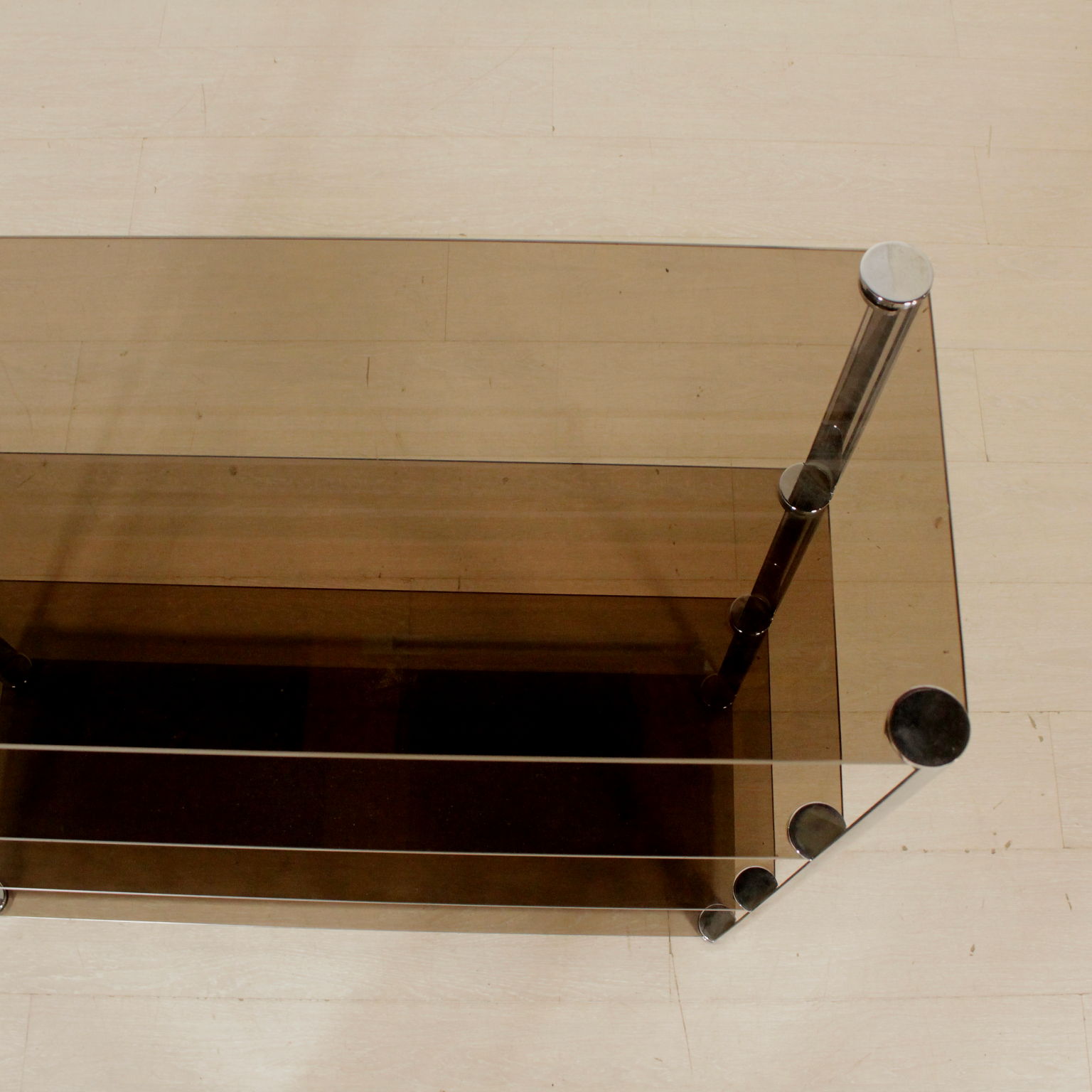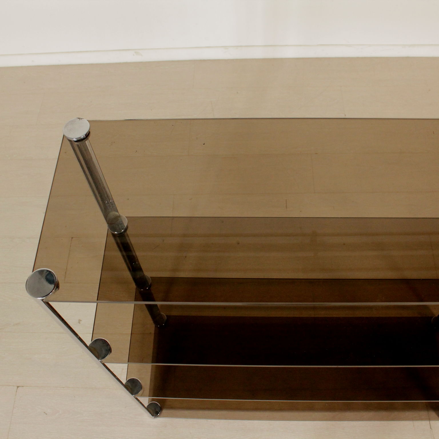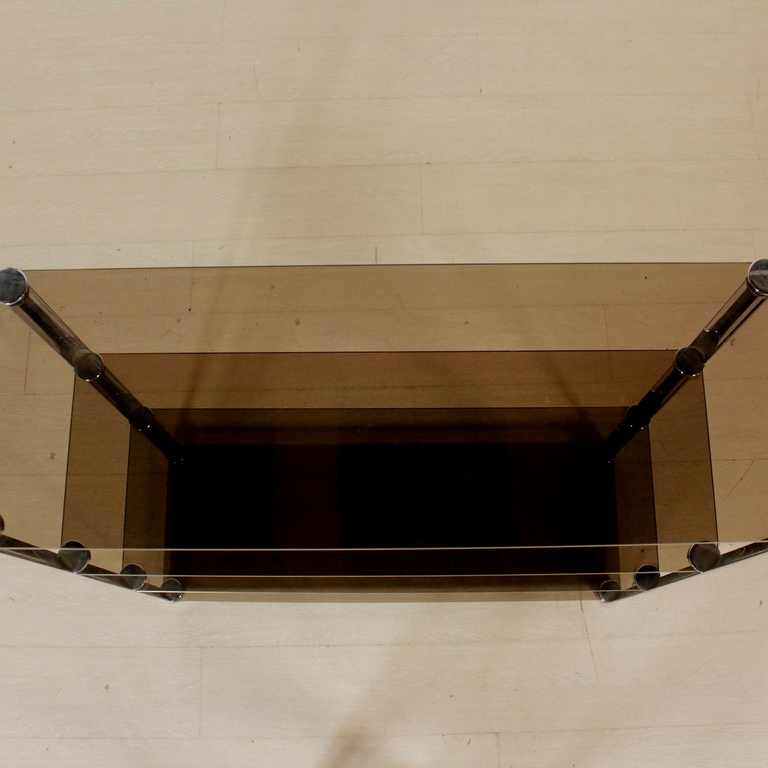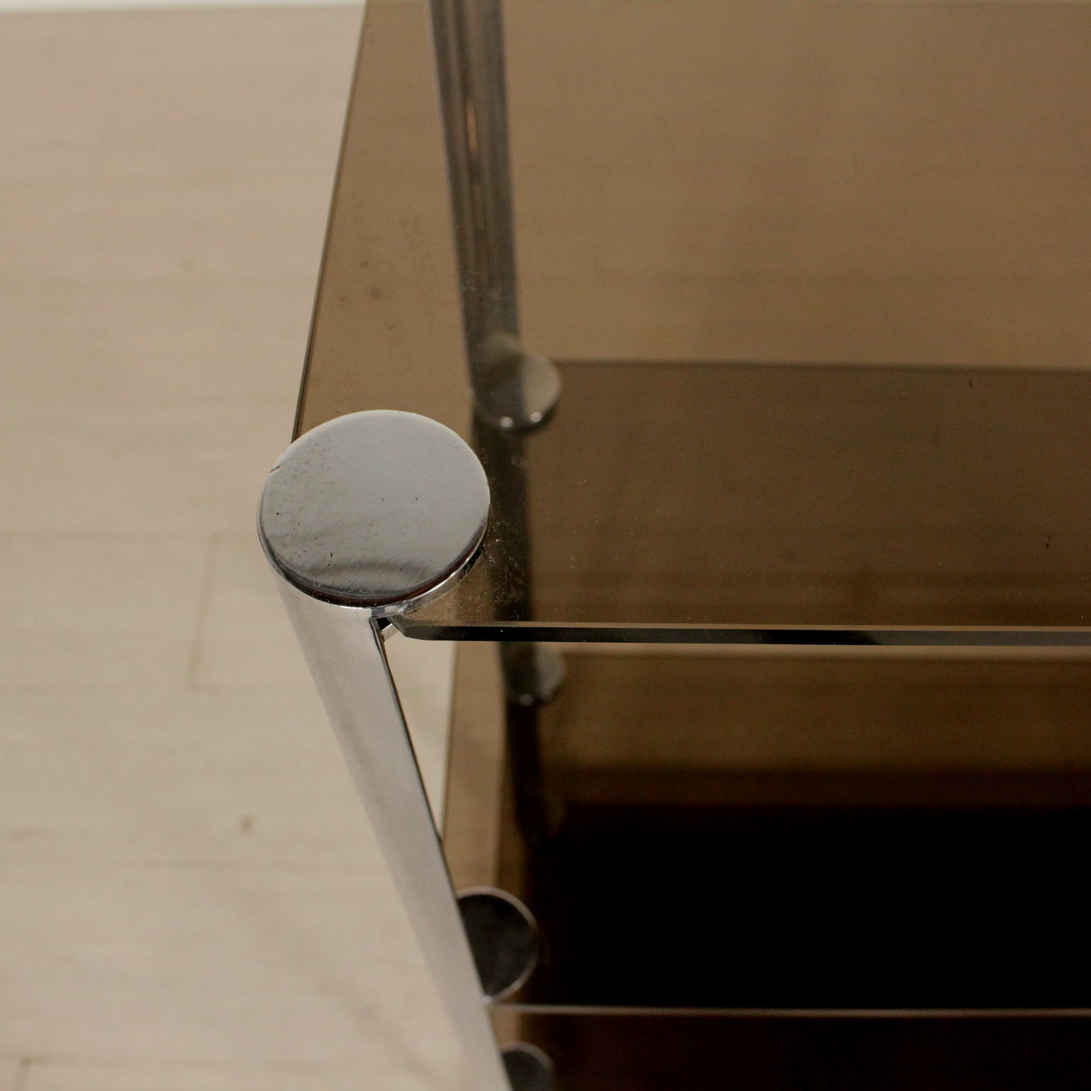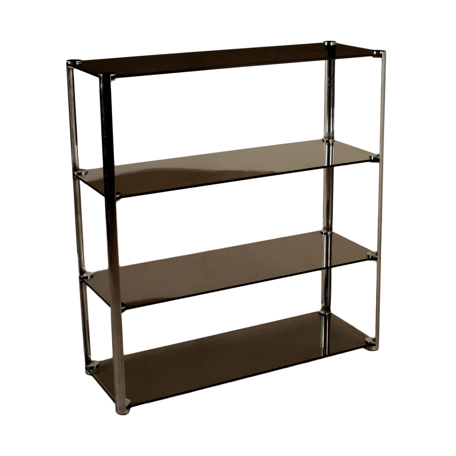 Bibliothèque; métal chromé, verre fumé. Fabriqué en Italie. Années 60.