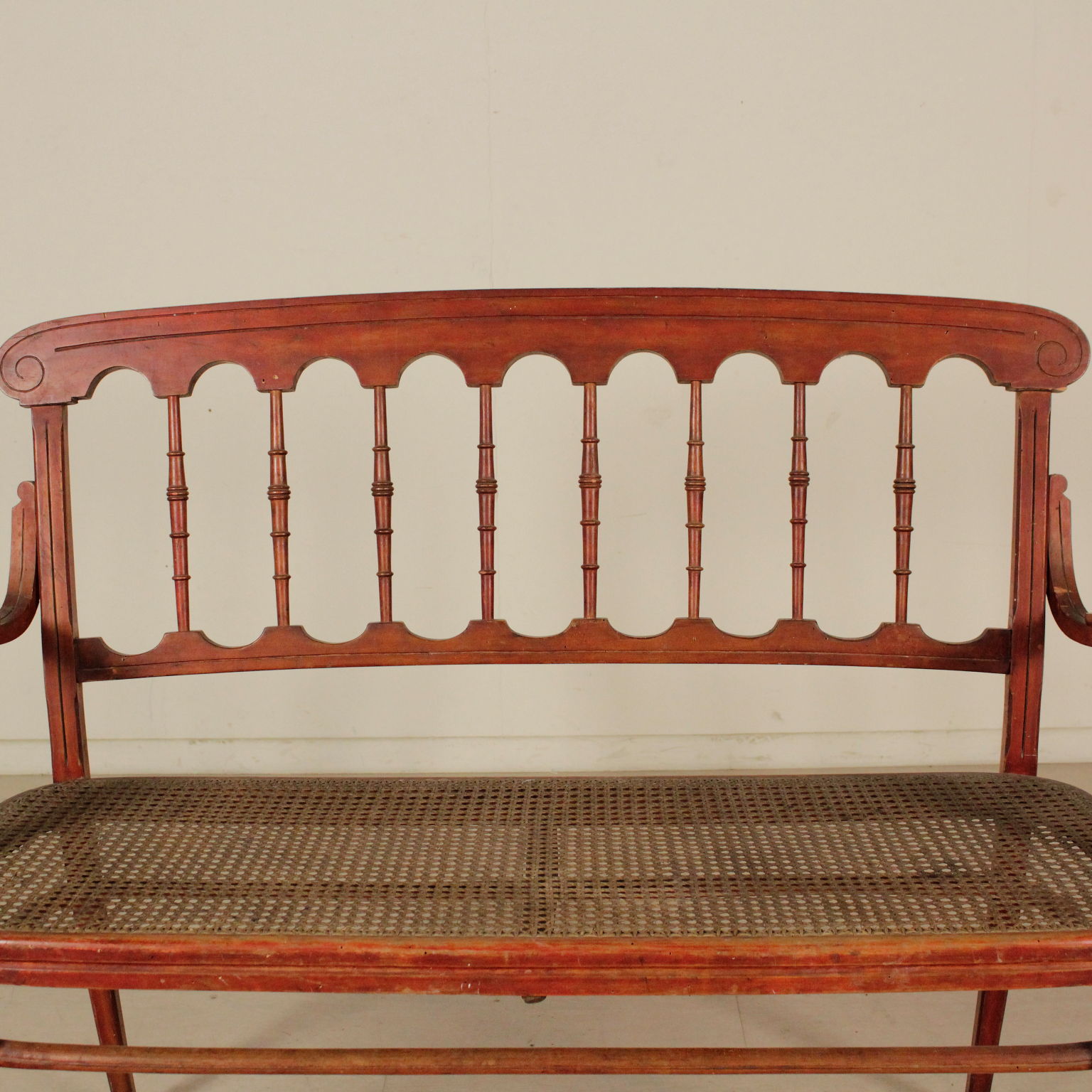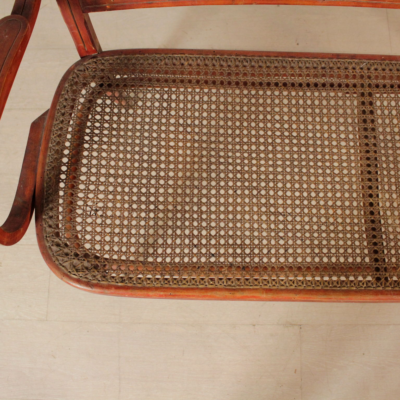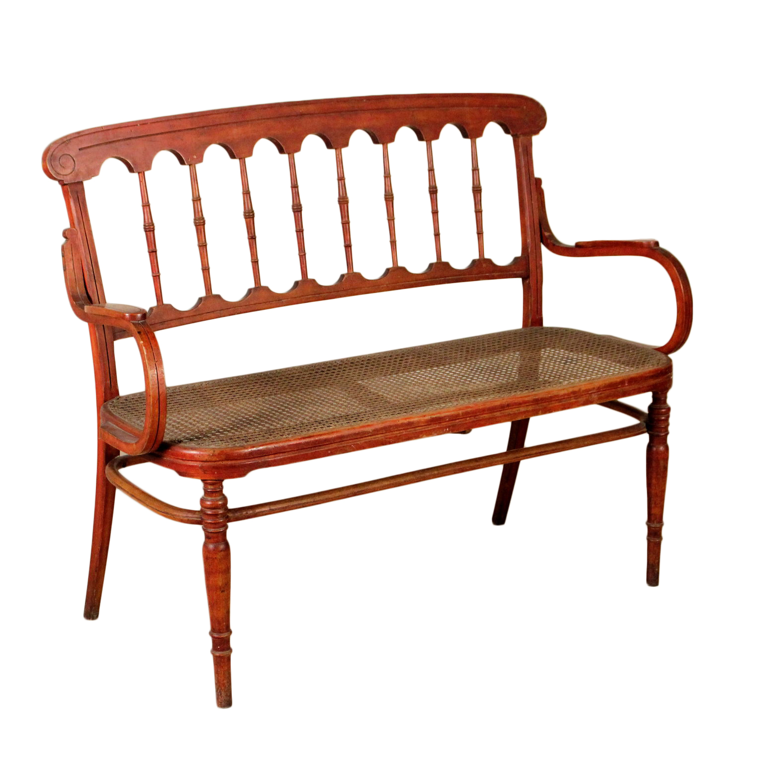 Petite canapé en hêtre à la vapeur courbé avec des tournages; séance cannée. Fabriqué en Italie. Debut '900.