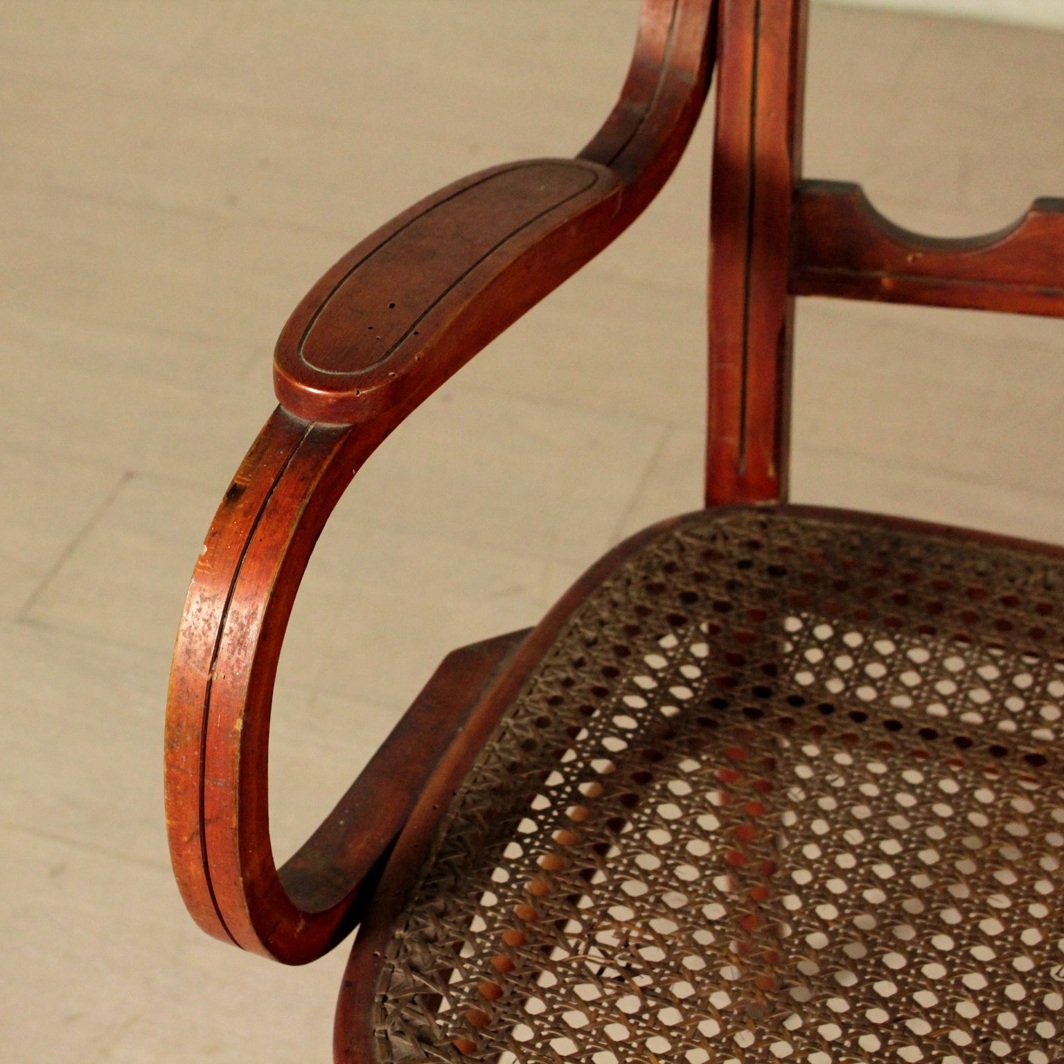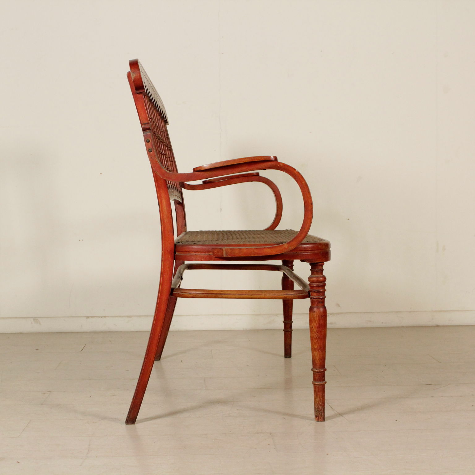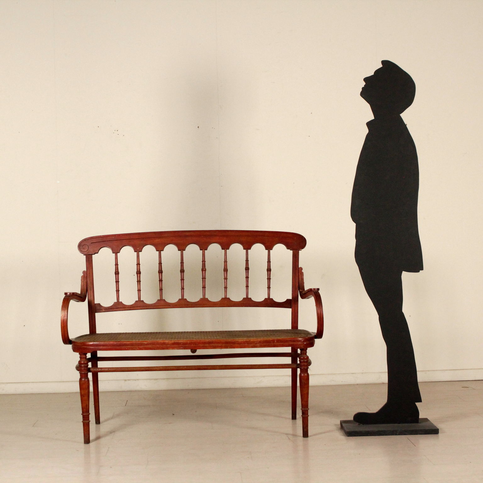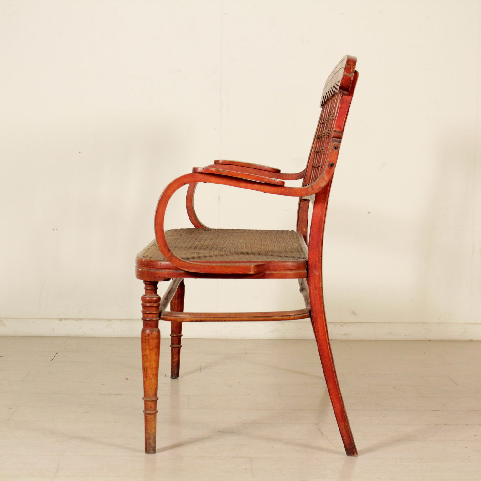 Petite canapé en hêtre à la vapeur courbé avec des tournages; séance cannée. Fabriqué en Italie. Debut '900.