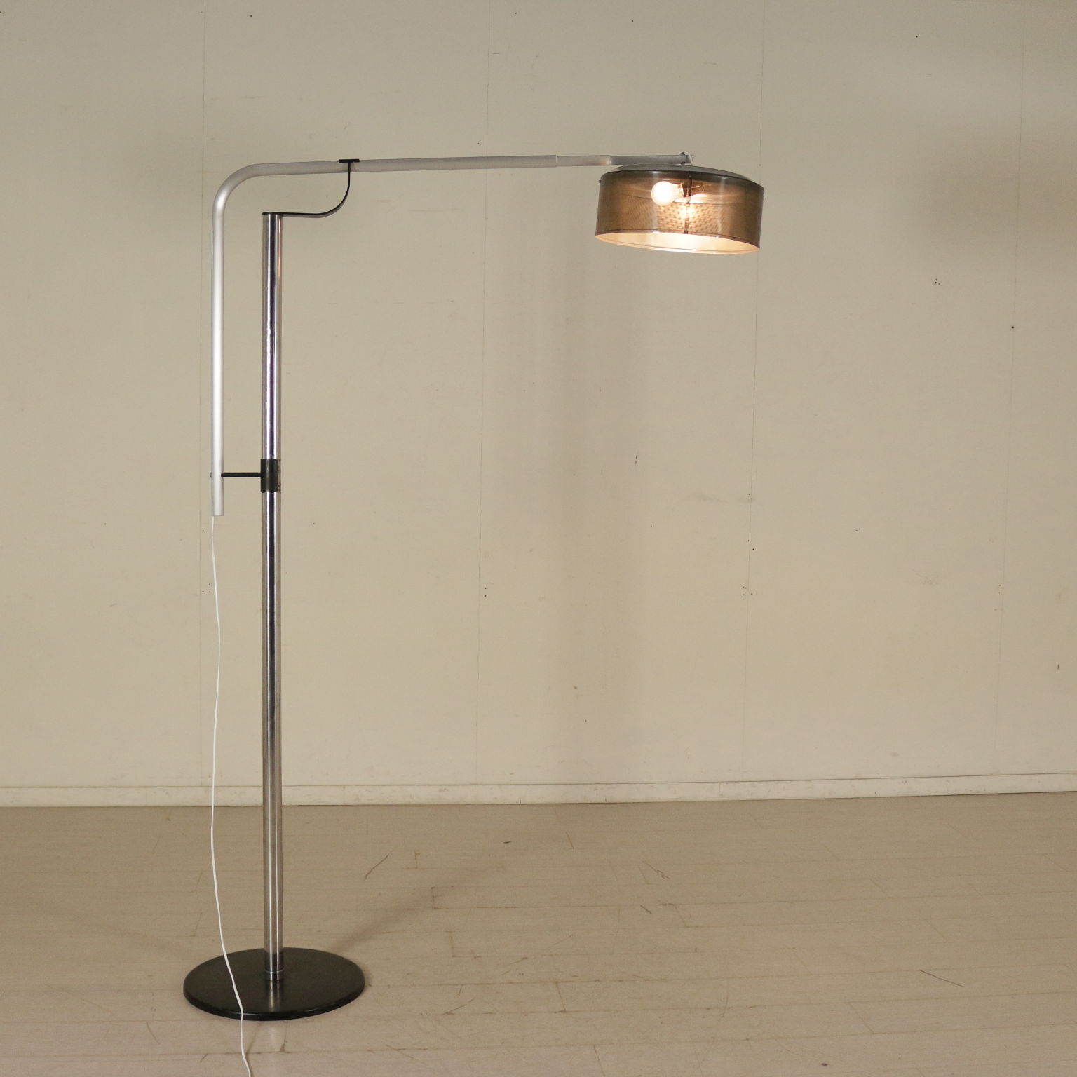 Lampadaire avec bras extensible; métal et aluminium. Fabriqué en Italie. Années 70.