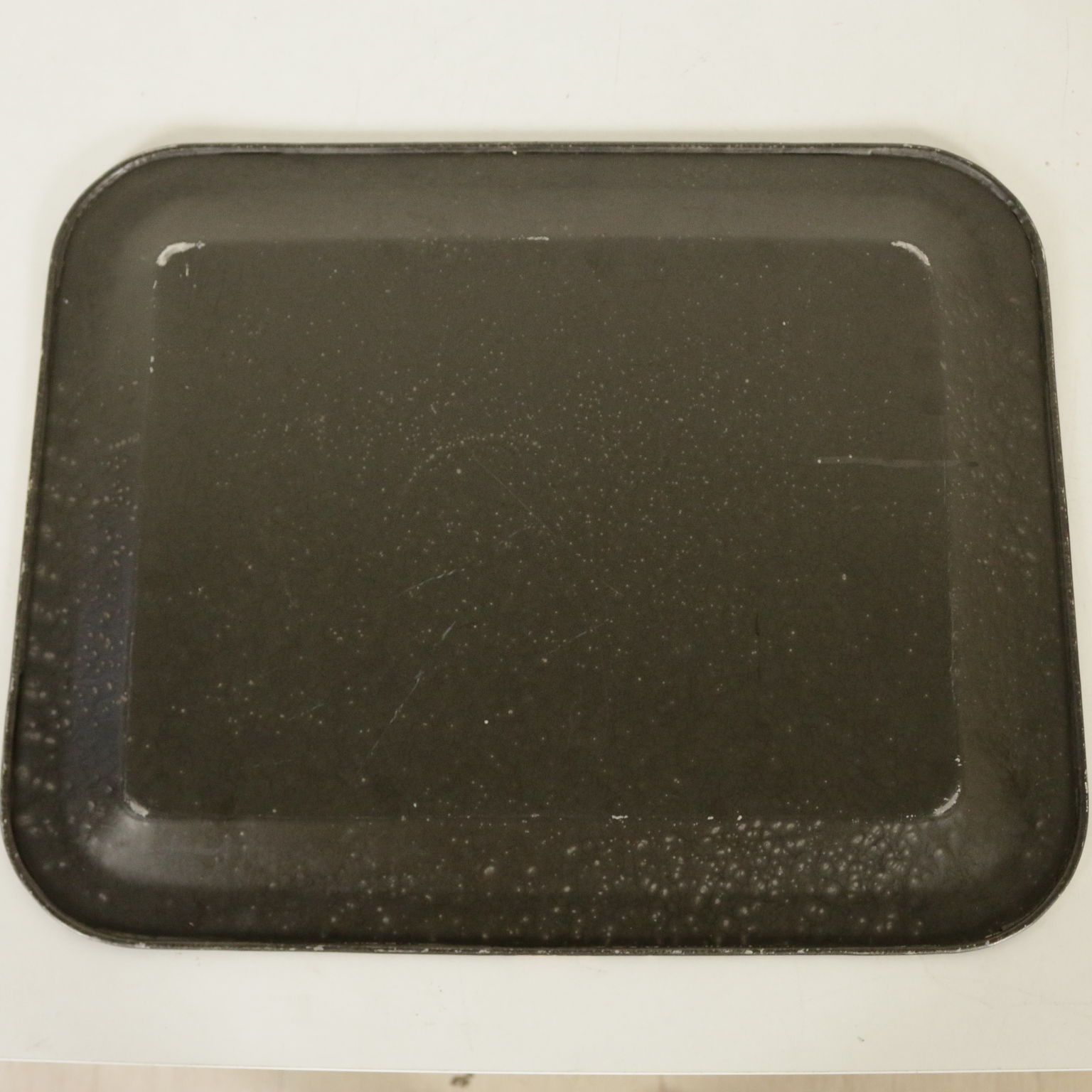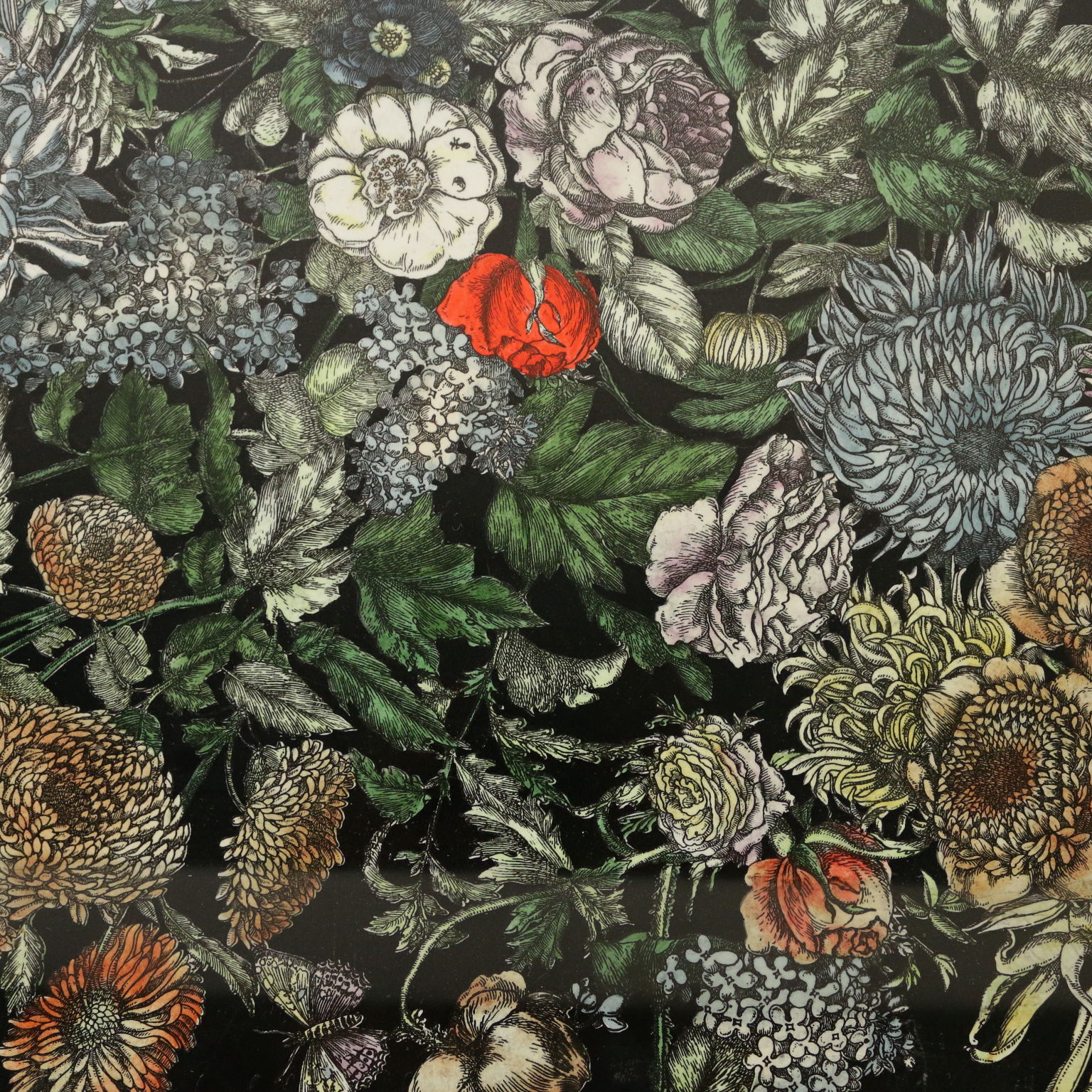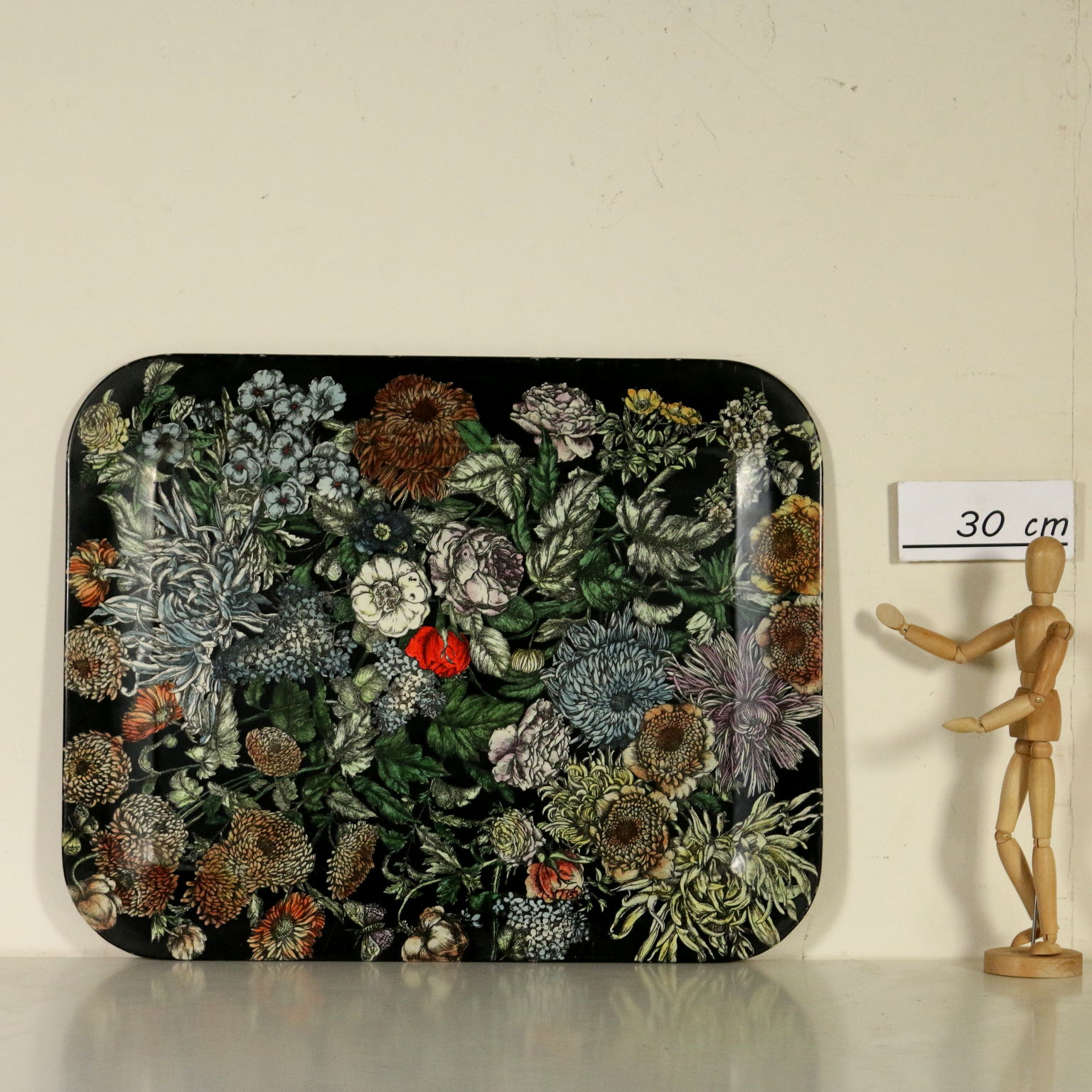 Plateau en métal avec decorations à fleurs et papillons sur fond noir. Fabriqué en Italie. Années 50-60.