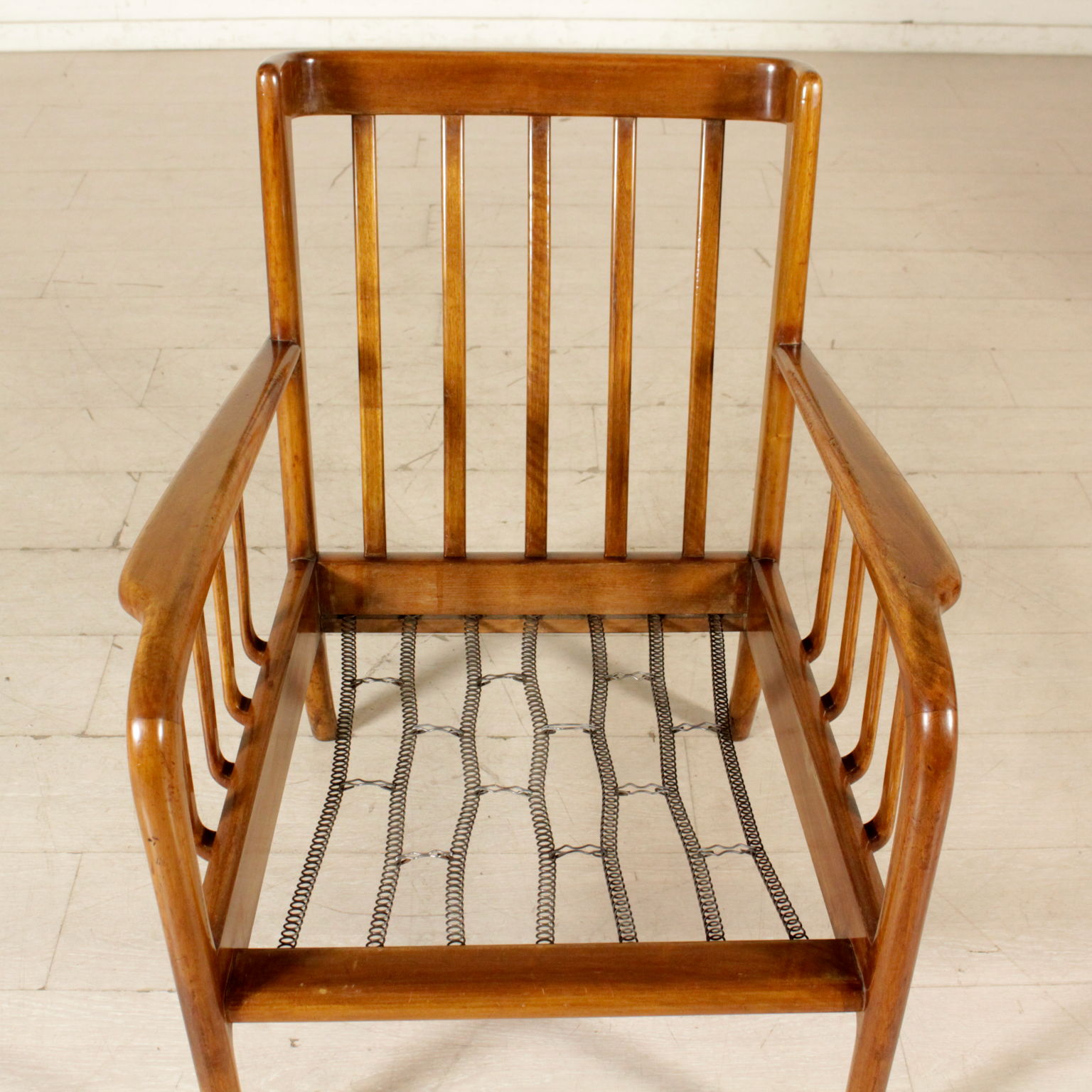 Paire de Fauteuils Hêtre Ressorts Velours Vintage Italie Années 40-50
