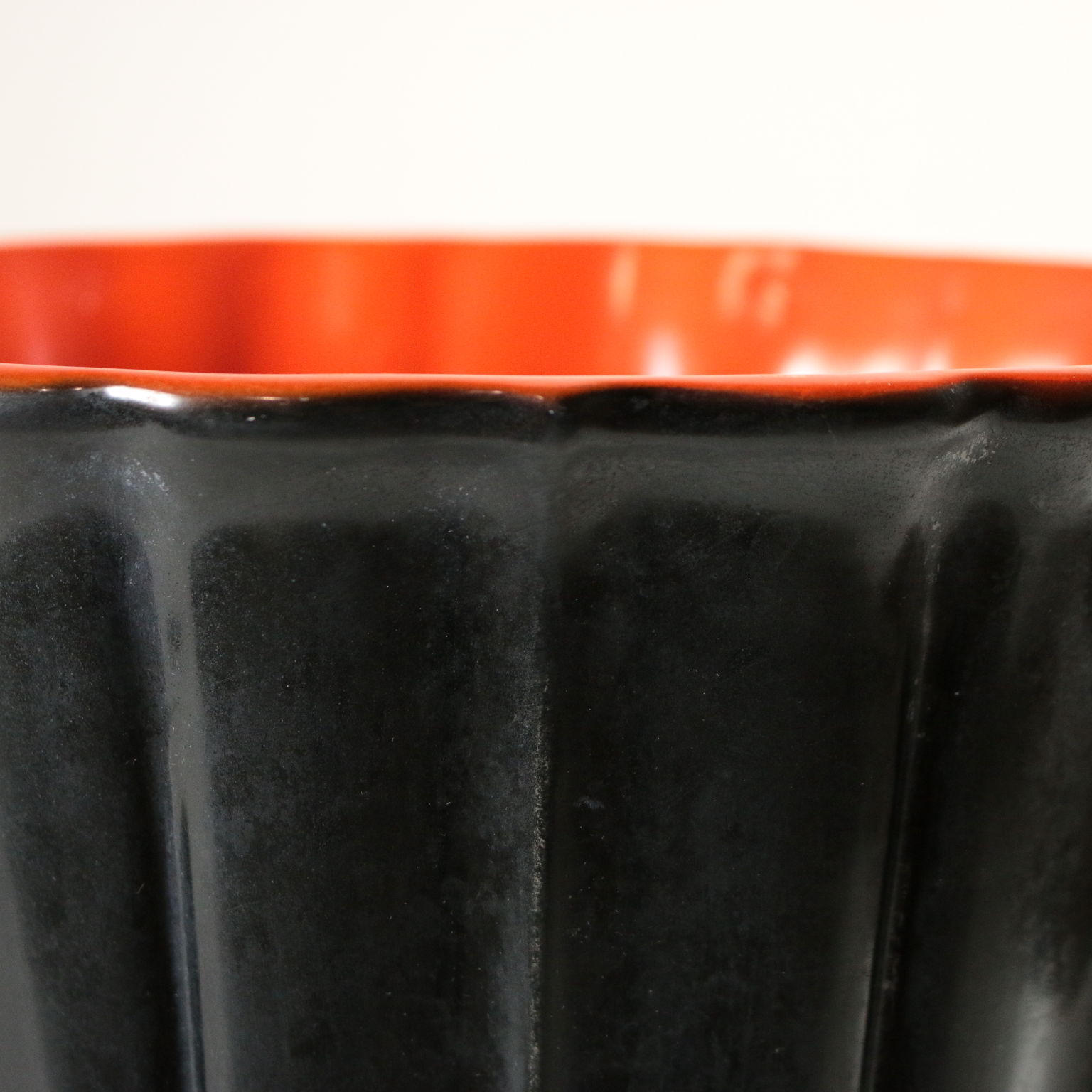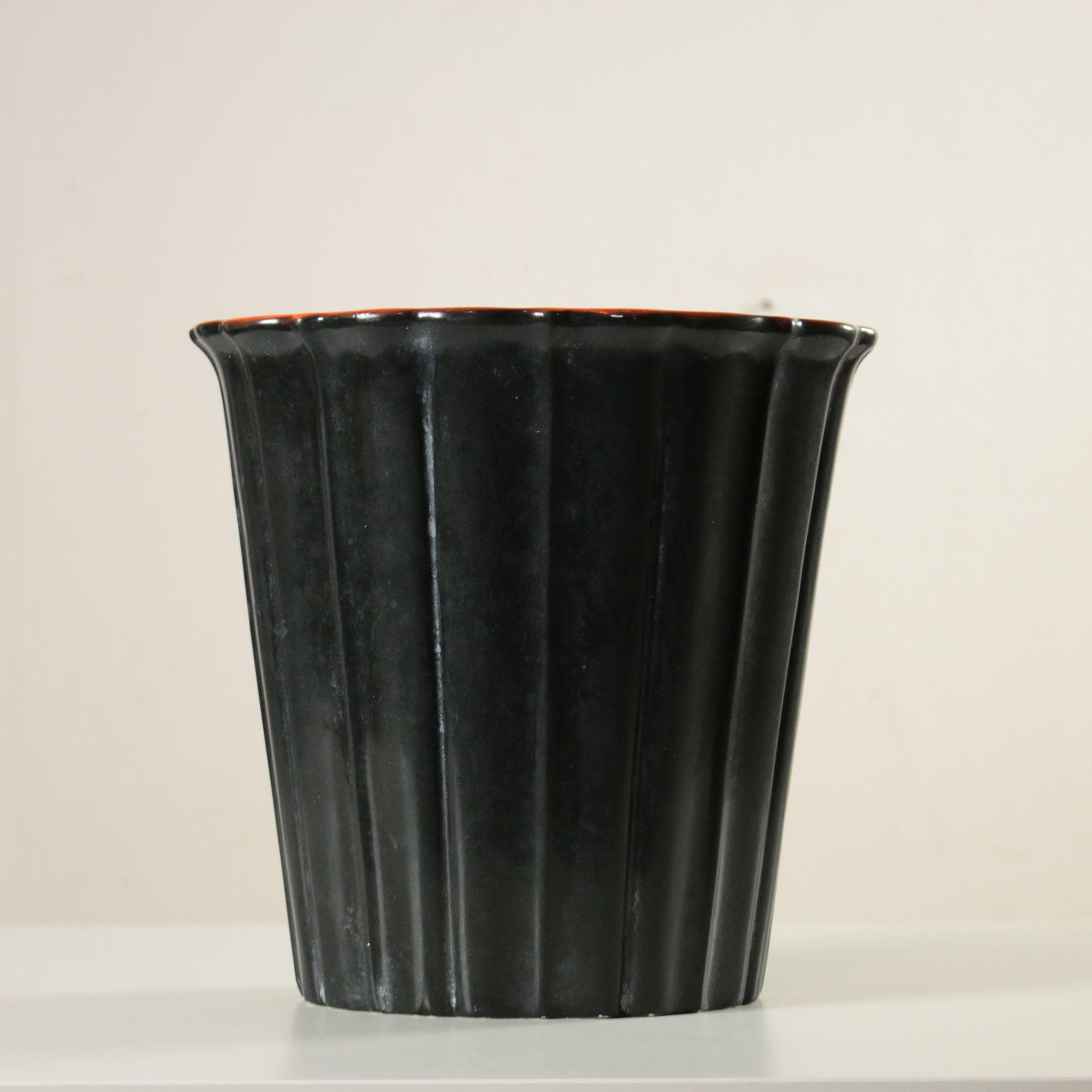 Vase Richard Ginori- San Cristoforo en terre cuite modelée au coulage noir émaillé et orange. Marque du manufacture sous la base. Fabriqué en Italie. Années 30-40.