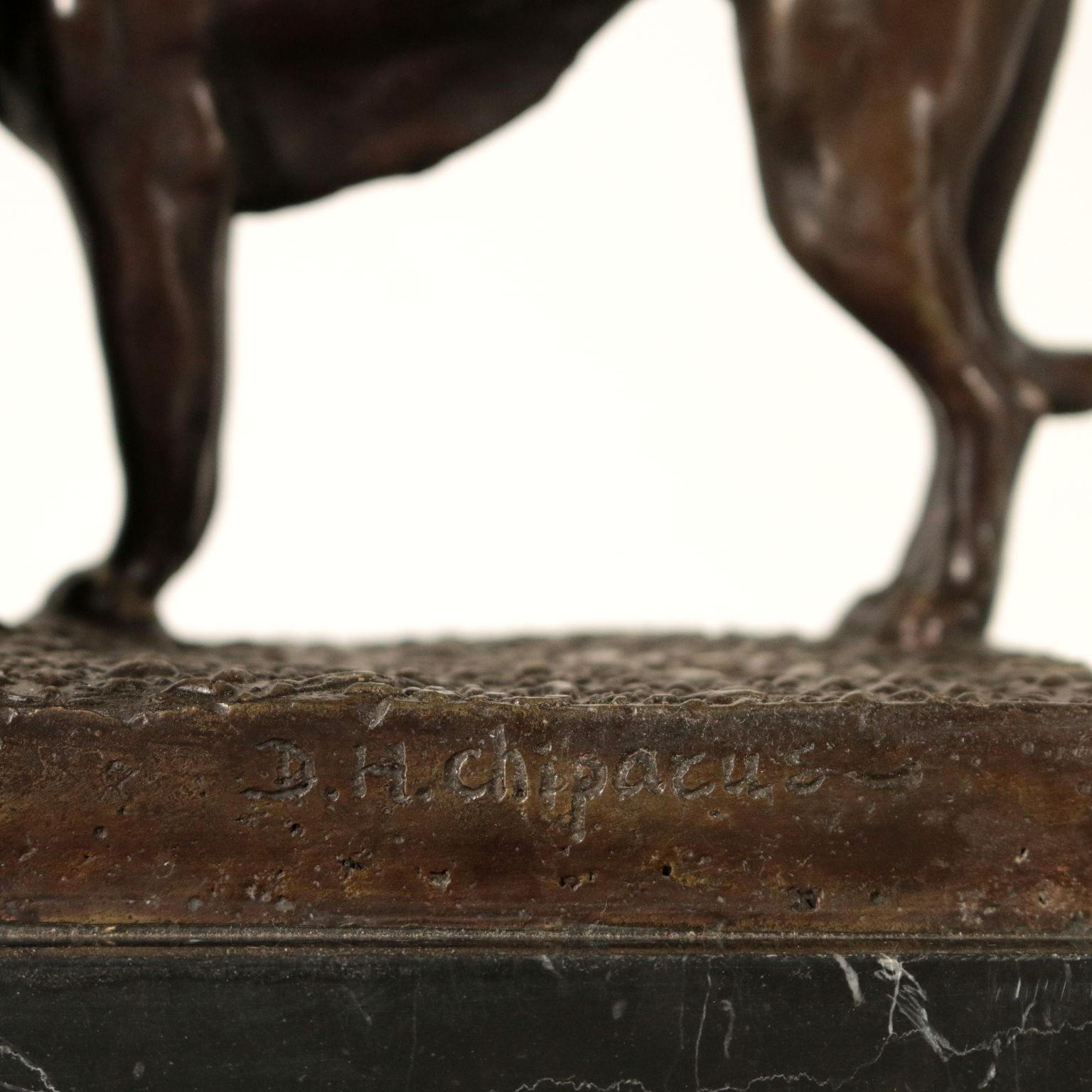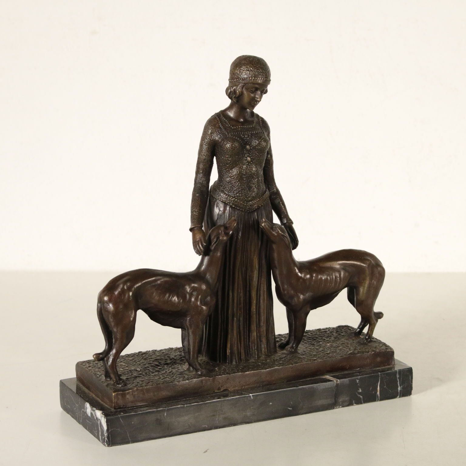 Sculpture en bronze titulé 'Gli amici fedeli'; base rectangulaire en marbre noir. Copie posthume du célèbre artiste.