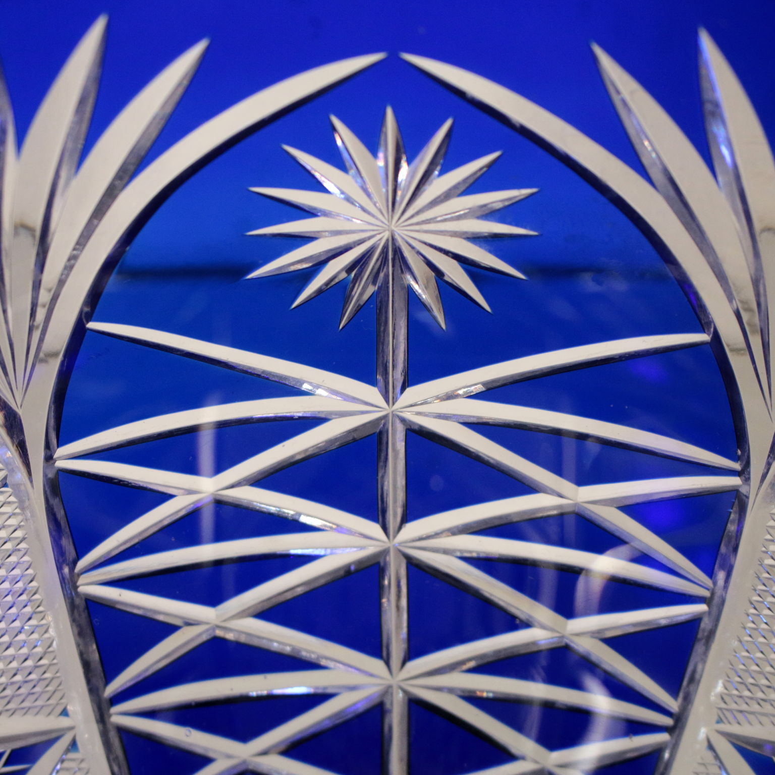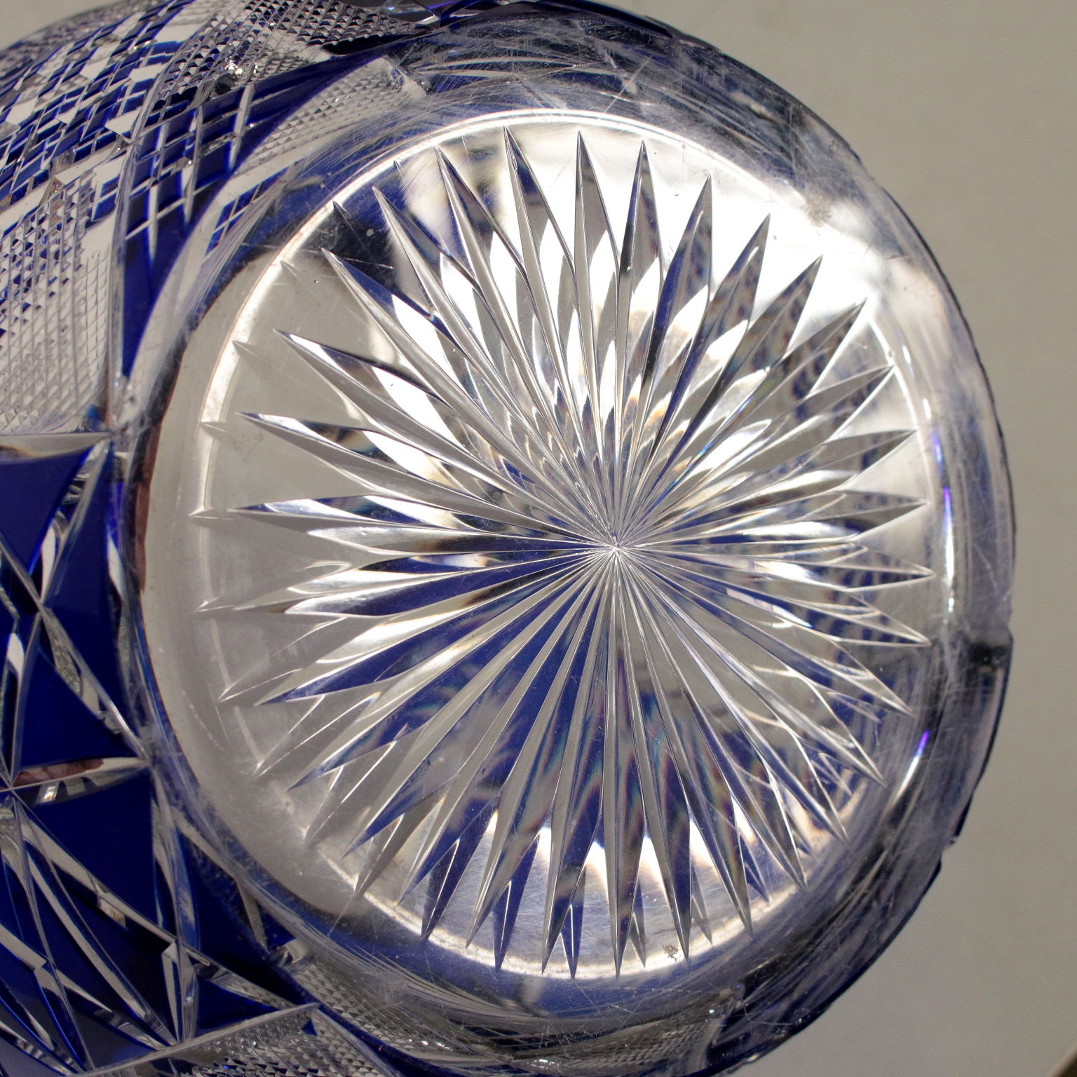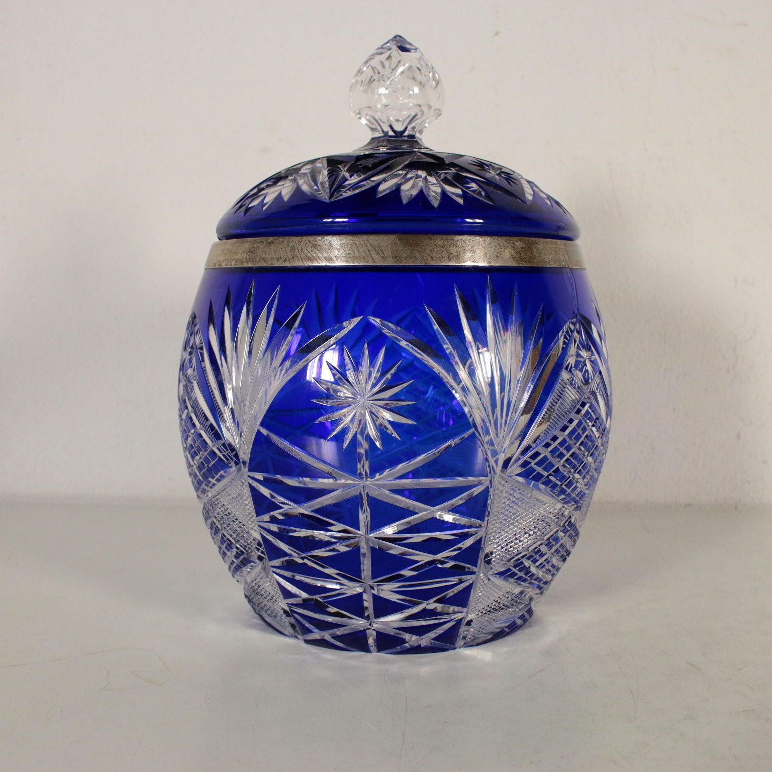 Récipient à punch en cristal taillé bleu et transparent. Base et bord en argent. Marques déposées à la base. Environ 350 gr.