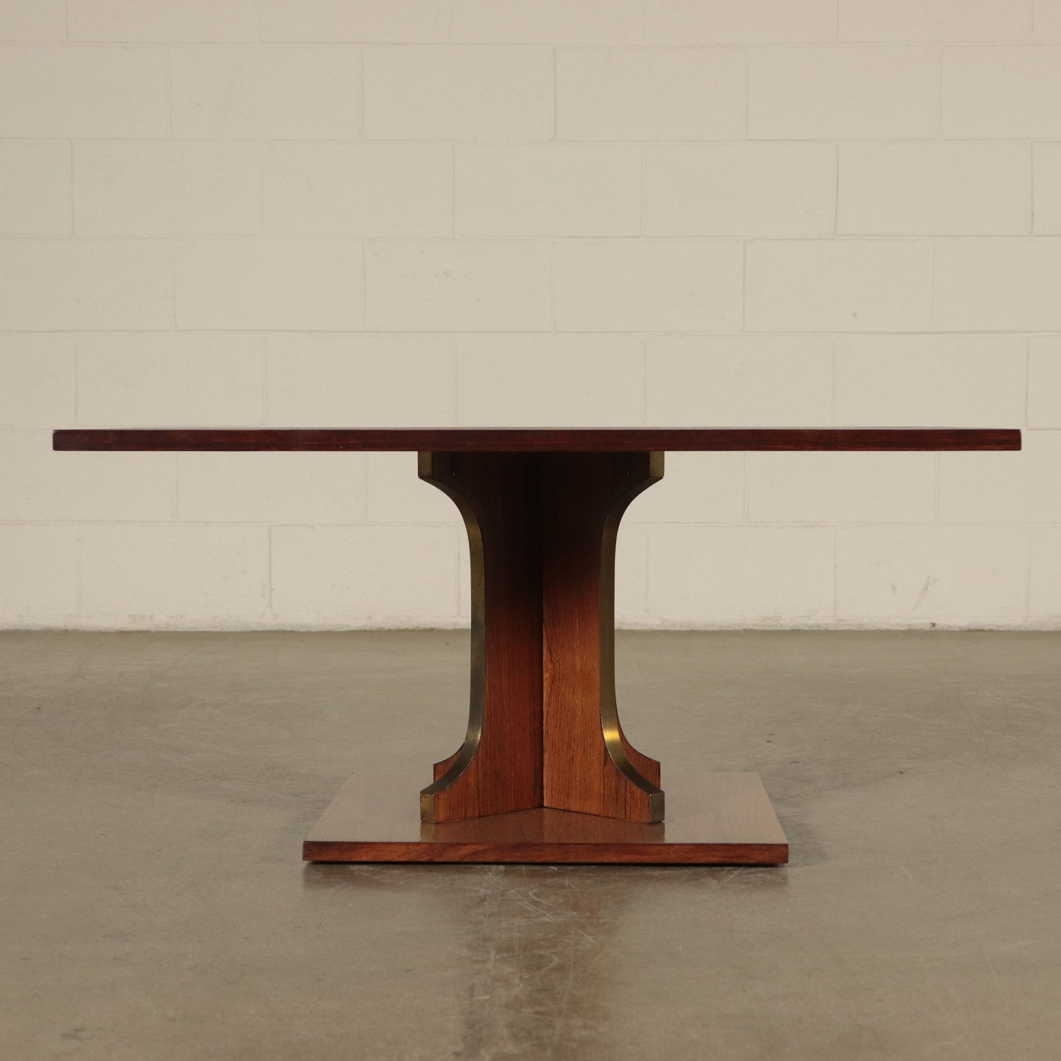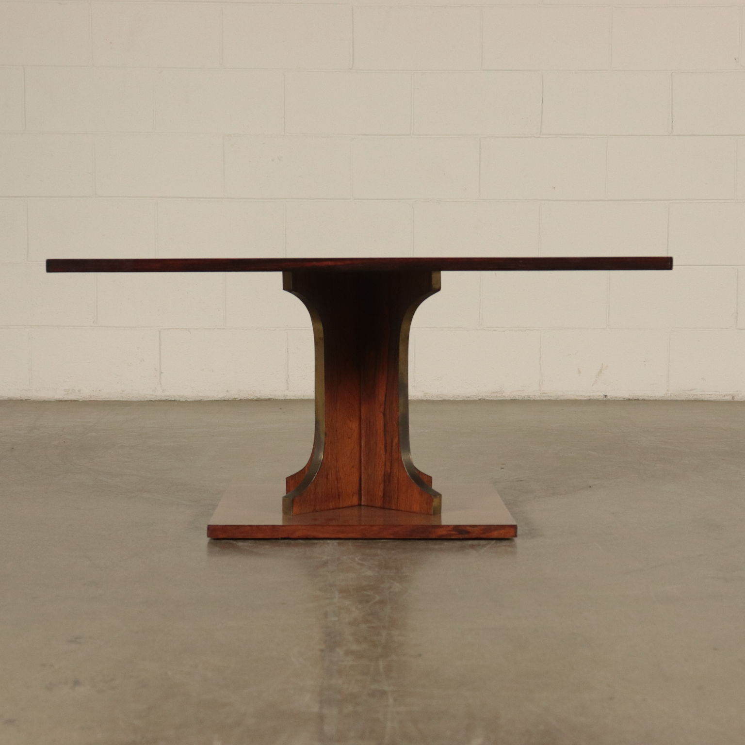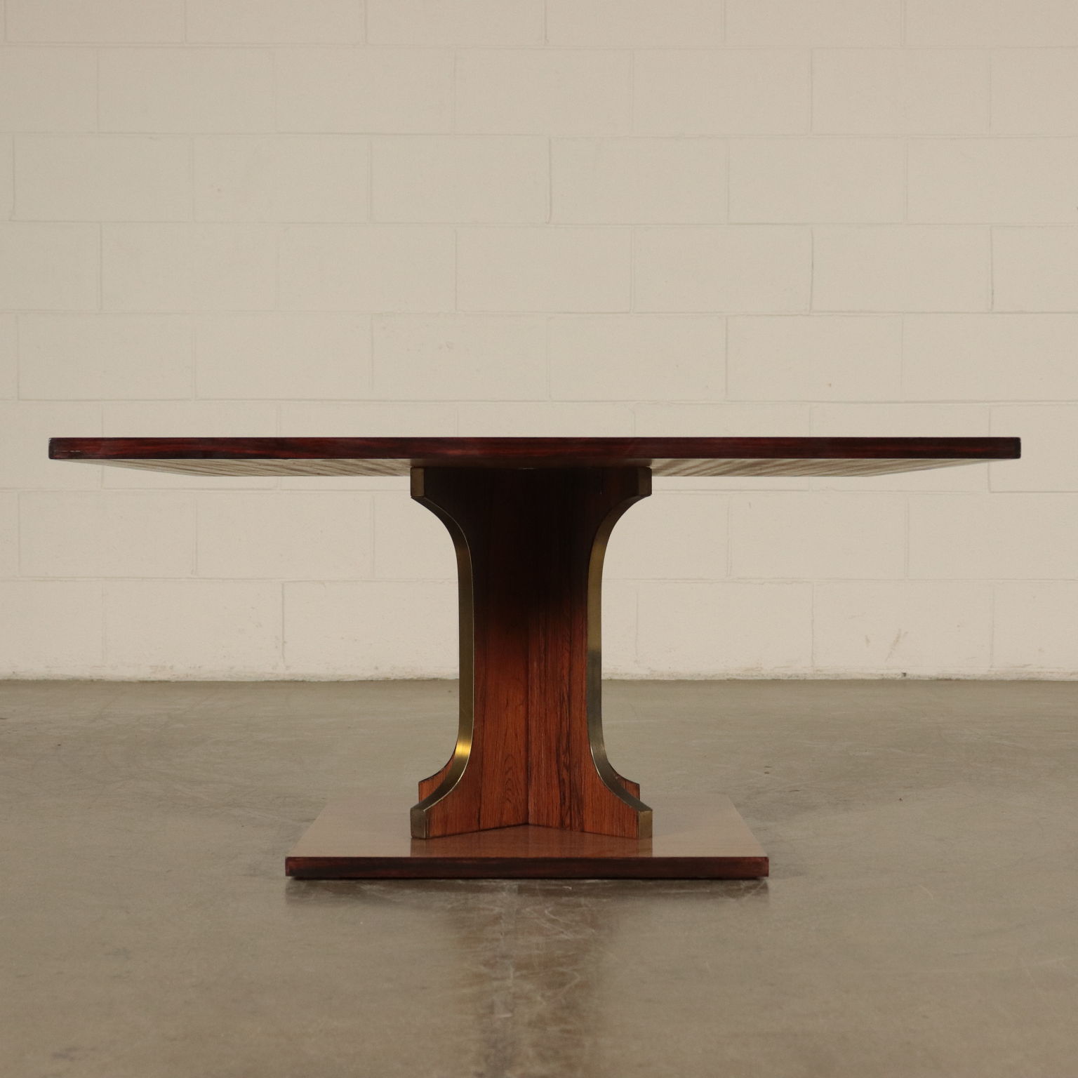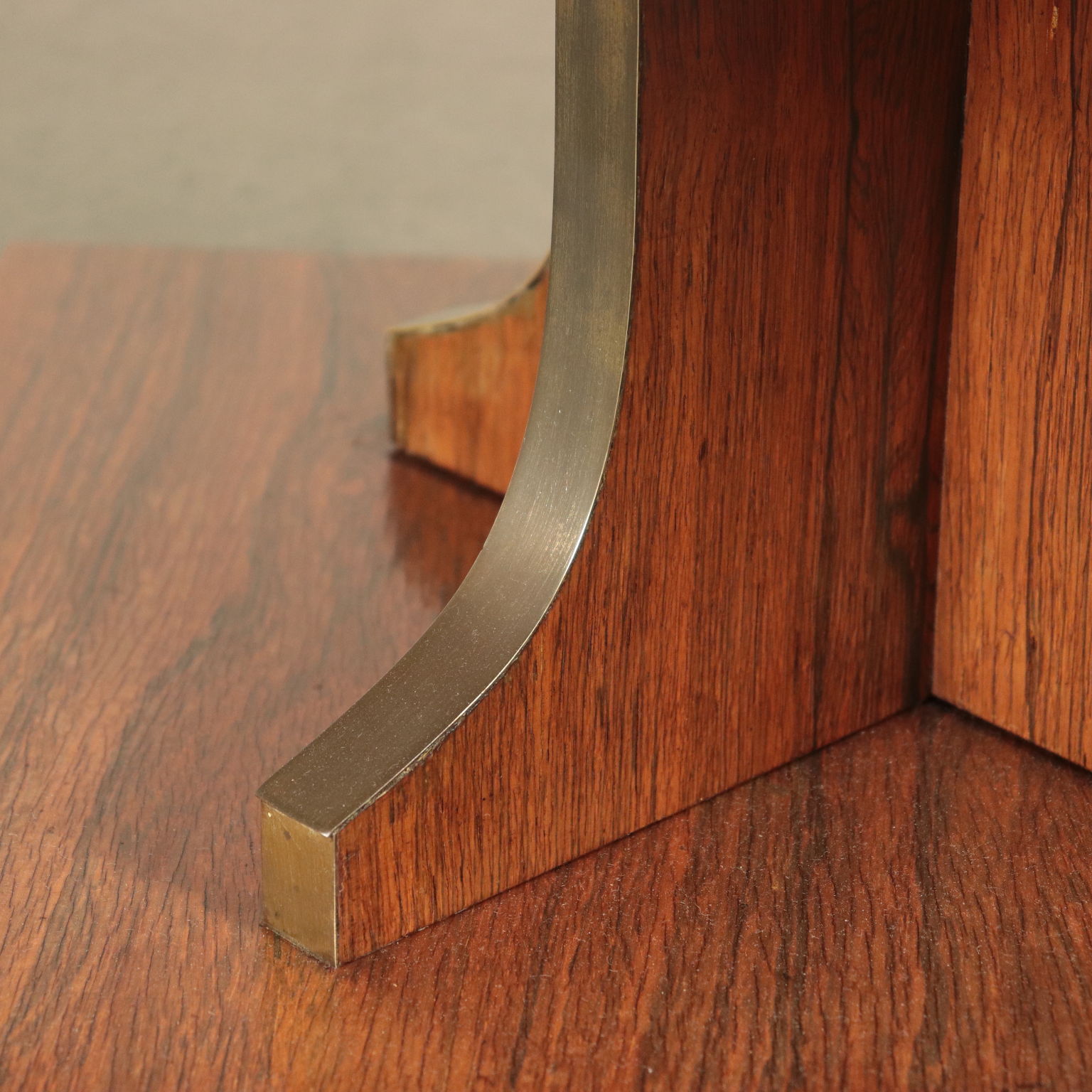 Petite table; placage de palissandre, profils en laiton. Fabriqué en Italie. Années 60.