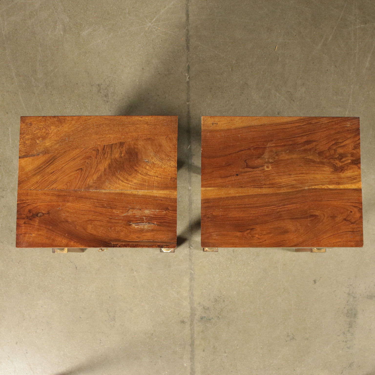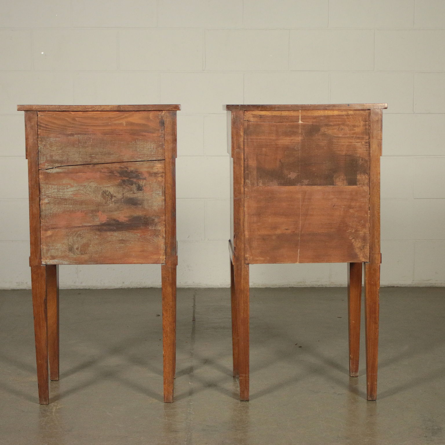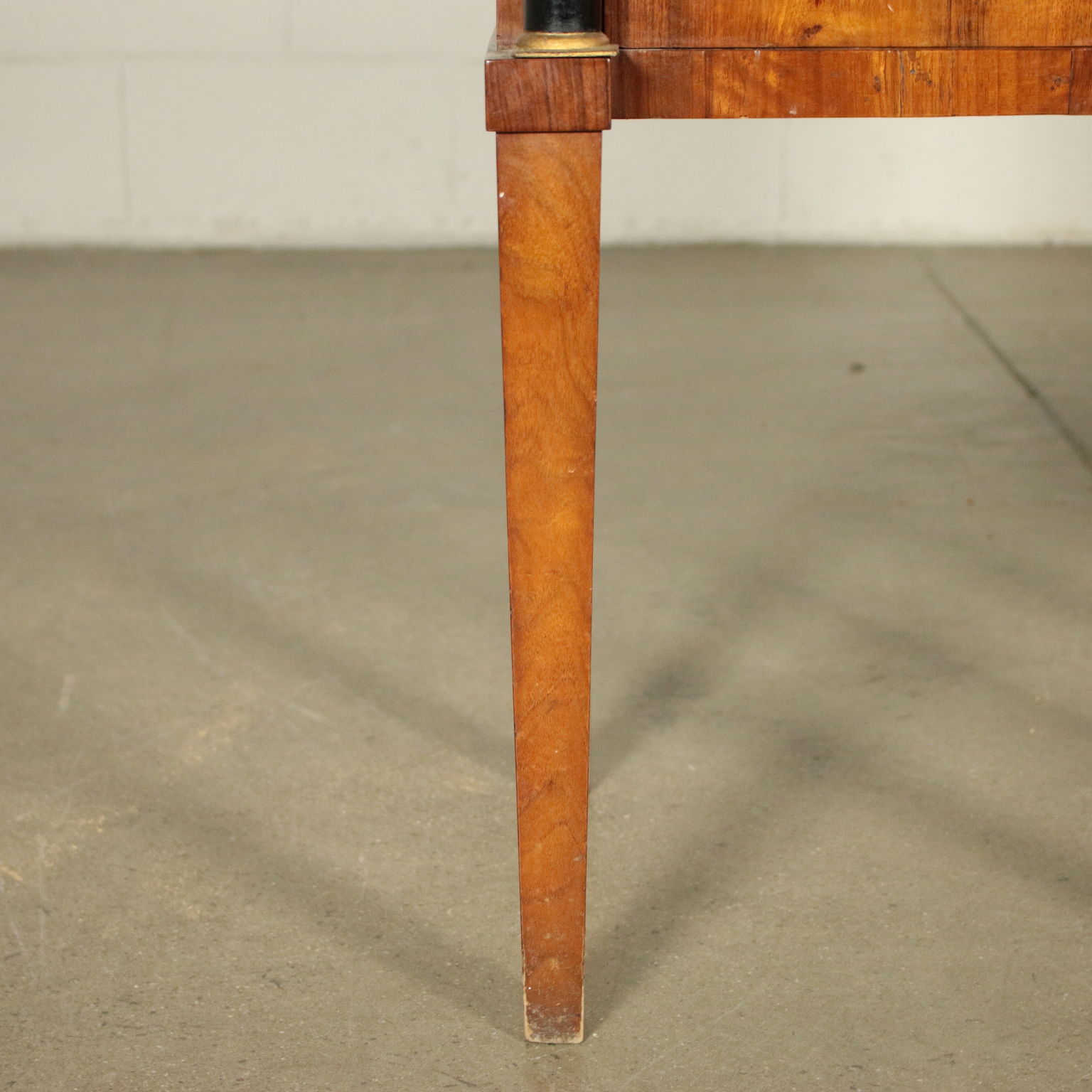Paire de tables de chevet dans l'Empire. Pris en charge par tronquée-pyramide des jambes fonctionnalité colonnes ebanizzate avec des chapiteaux sculptés et dorés. Une porte et un tiroir.