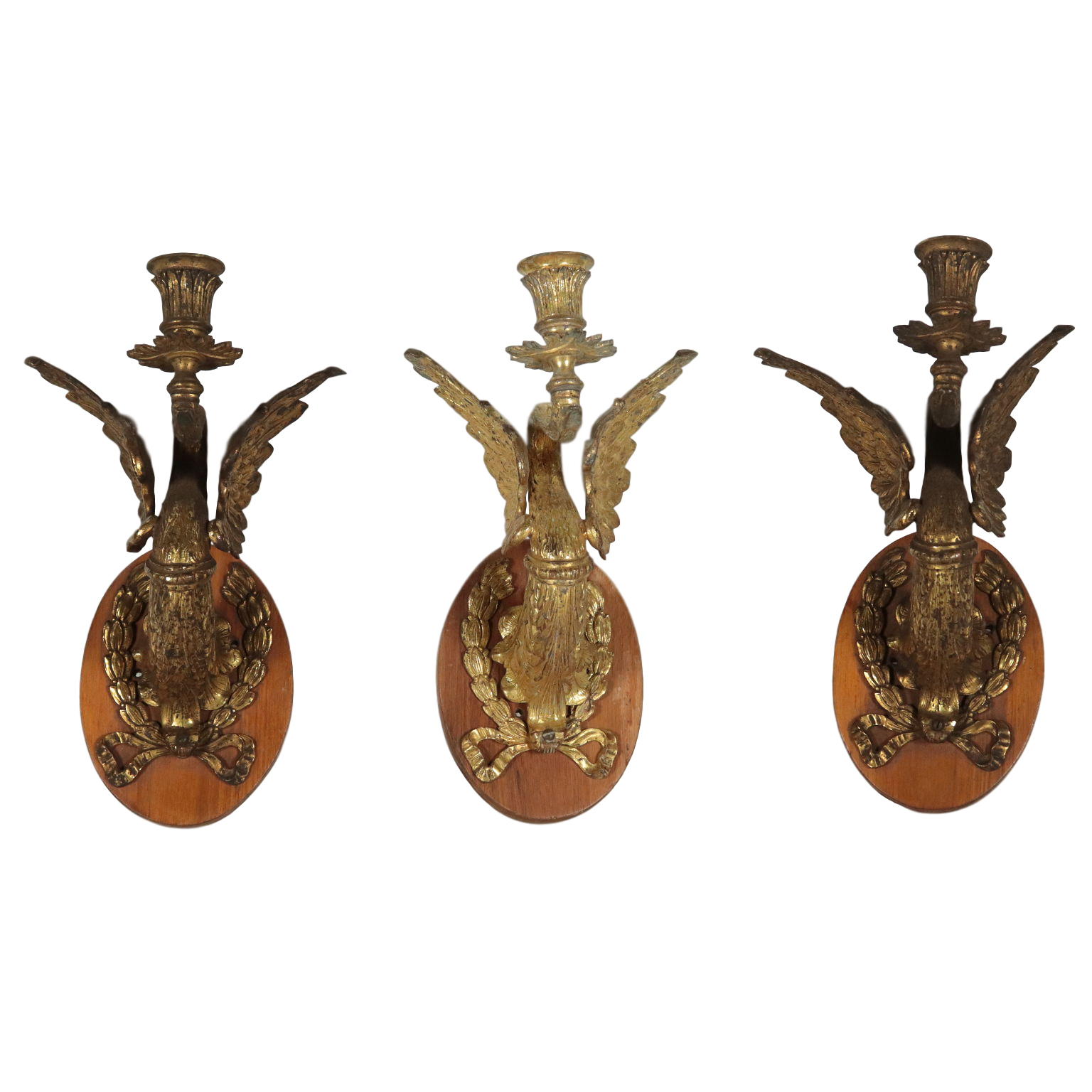 Suite de trois Appliques Bronze doré Italie Fin '800- Début '900