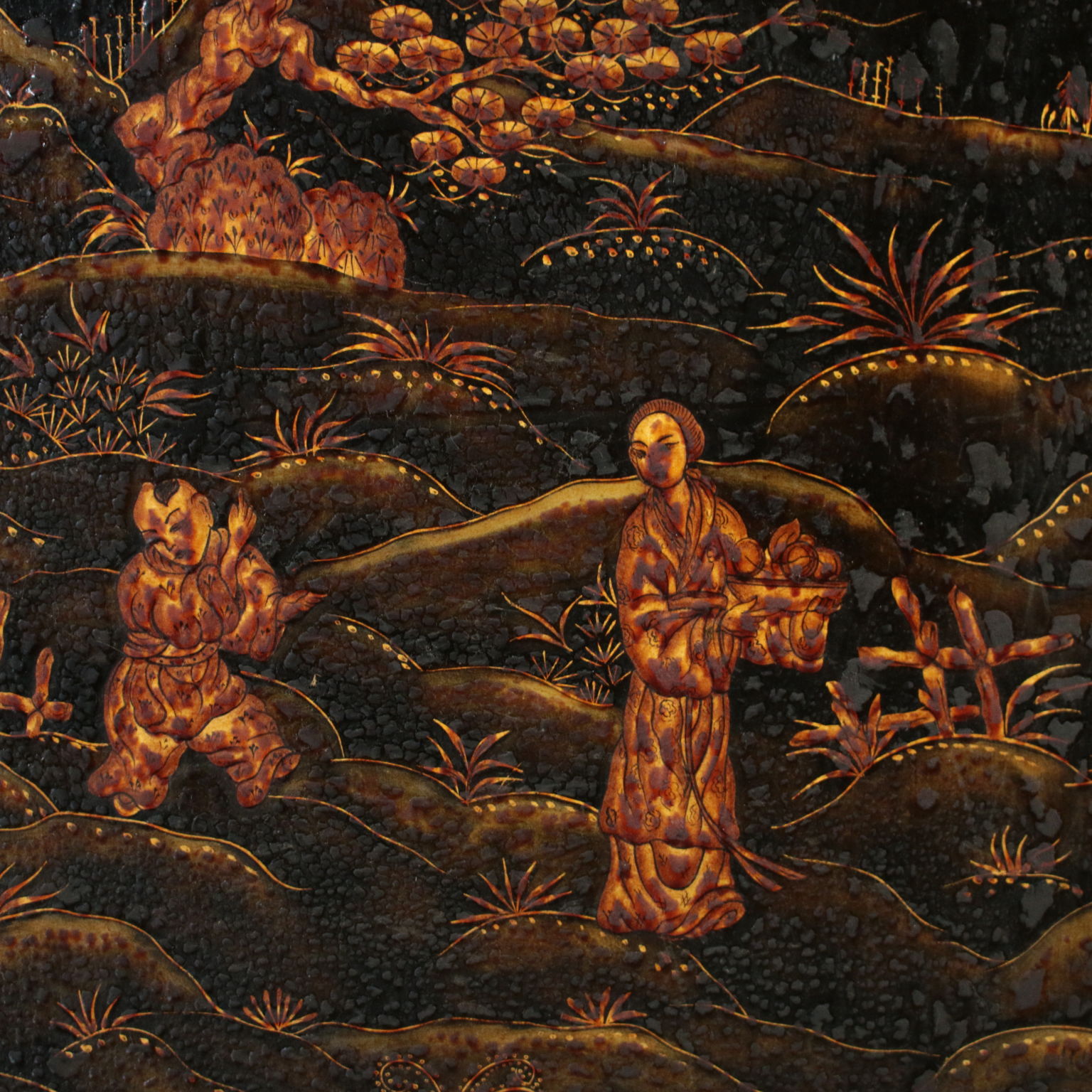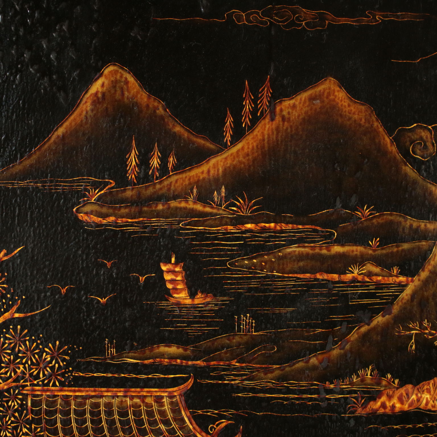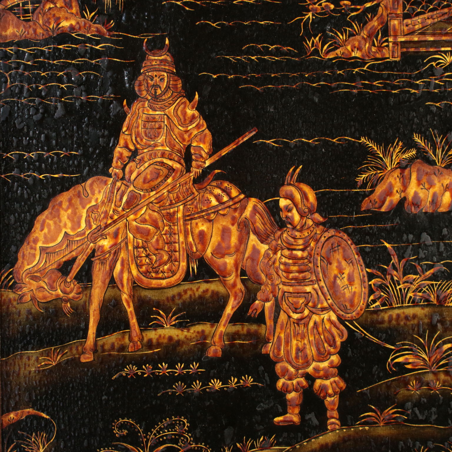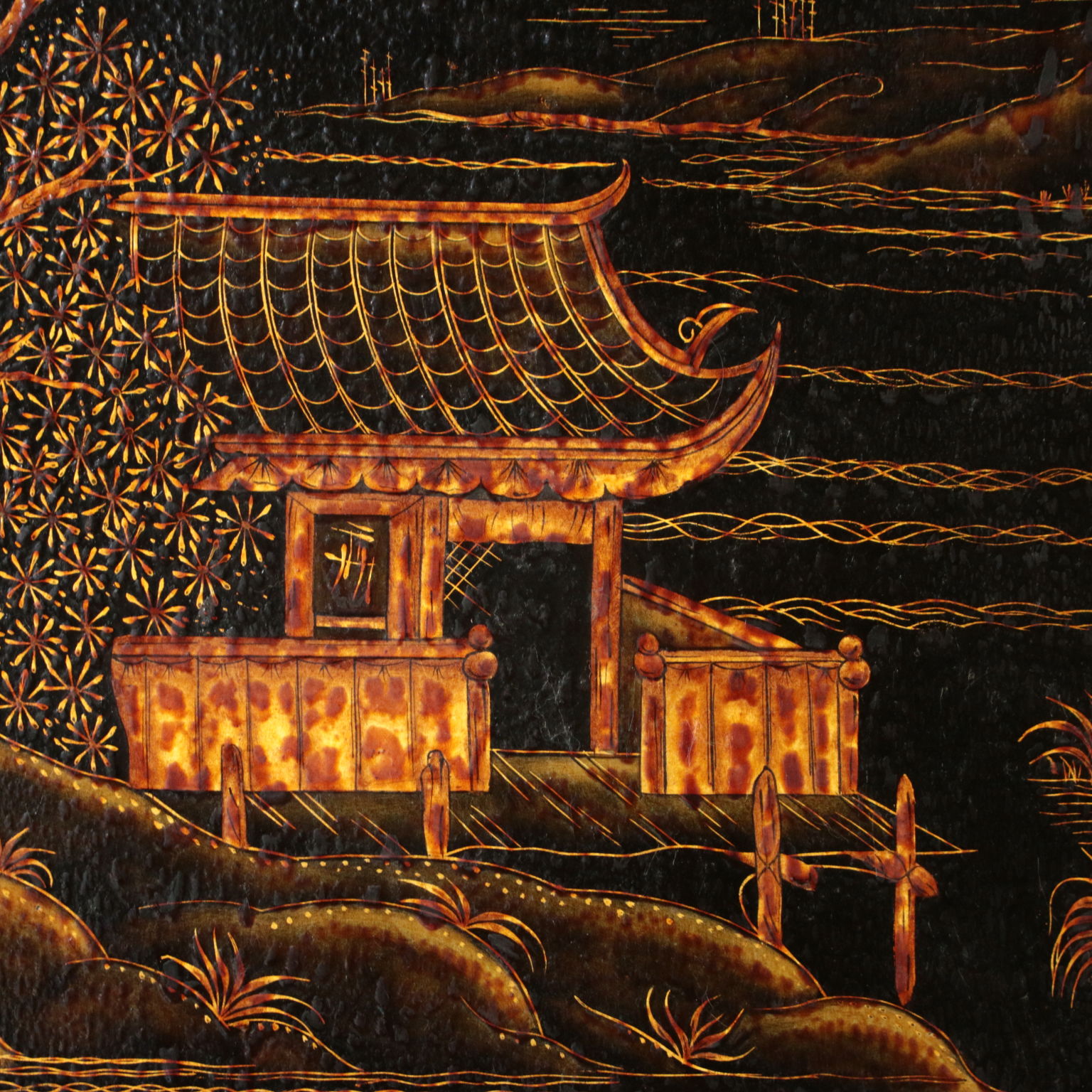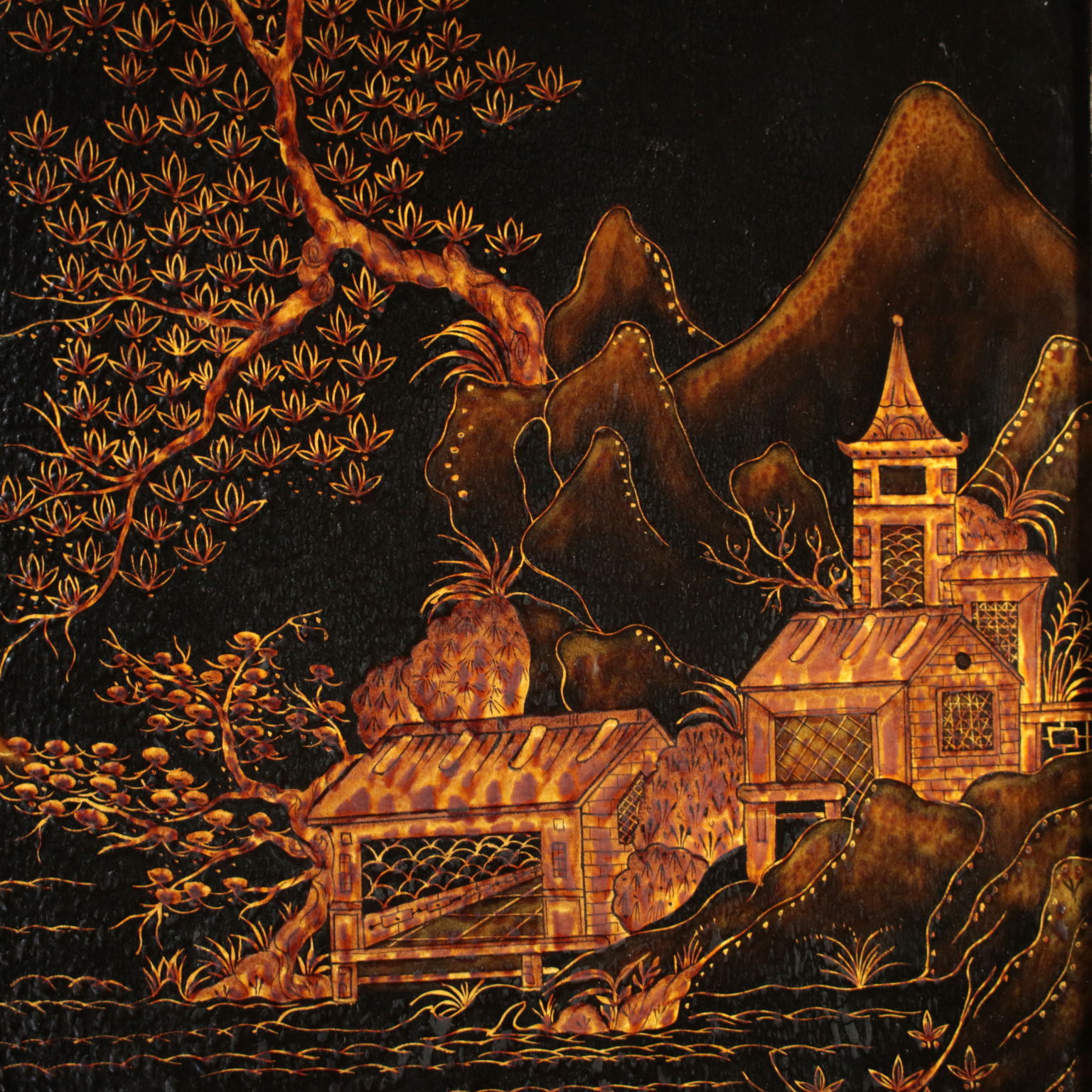 Armoire deux portes avec panneaux laqués et décorés avec motifs chinoiserie.
