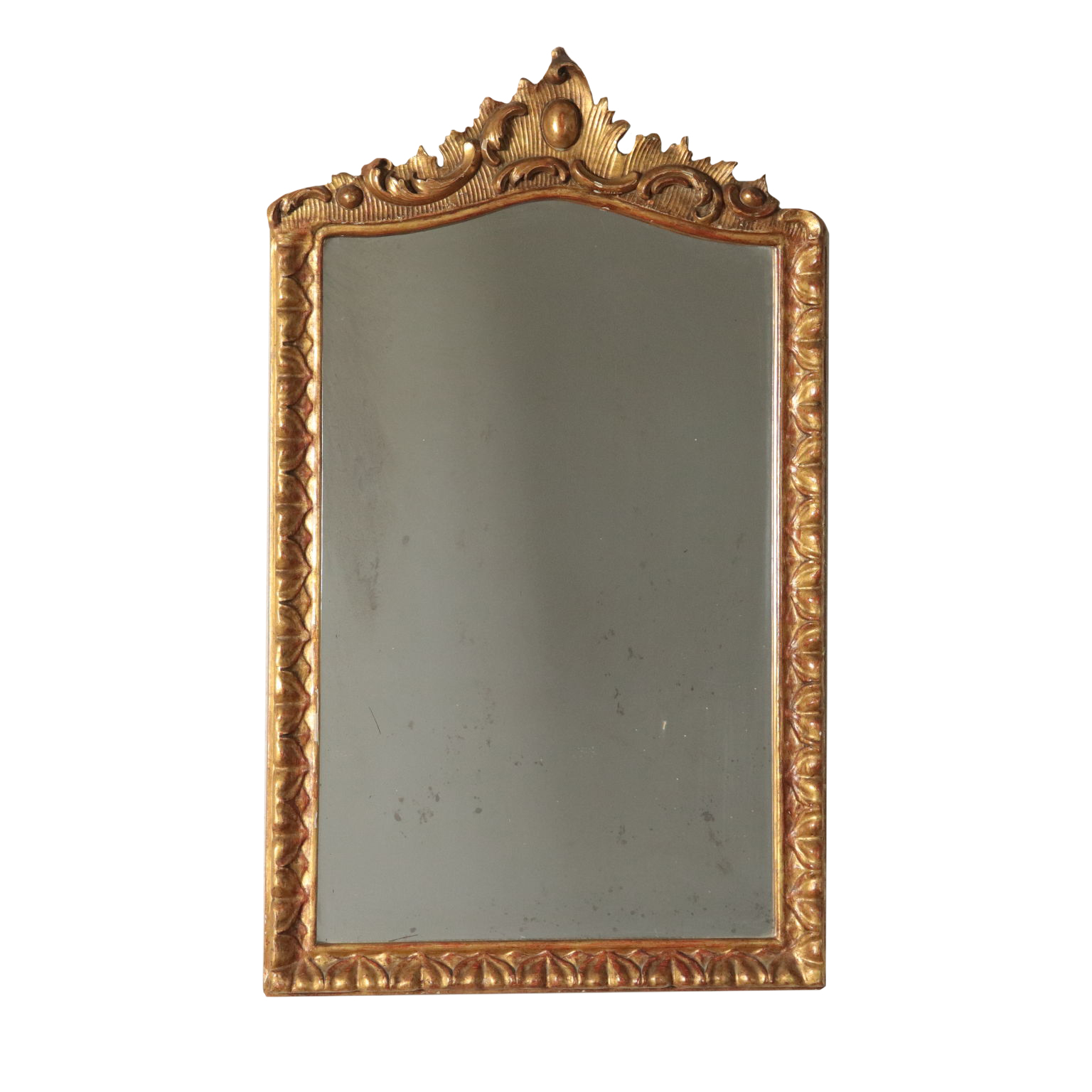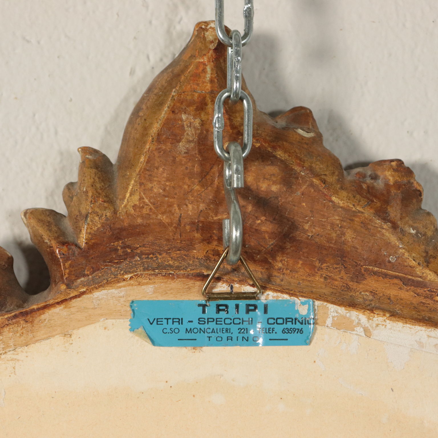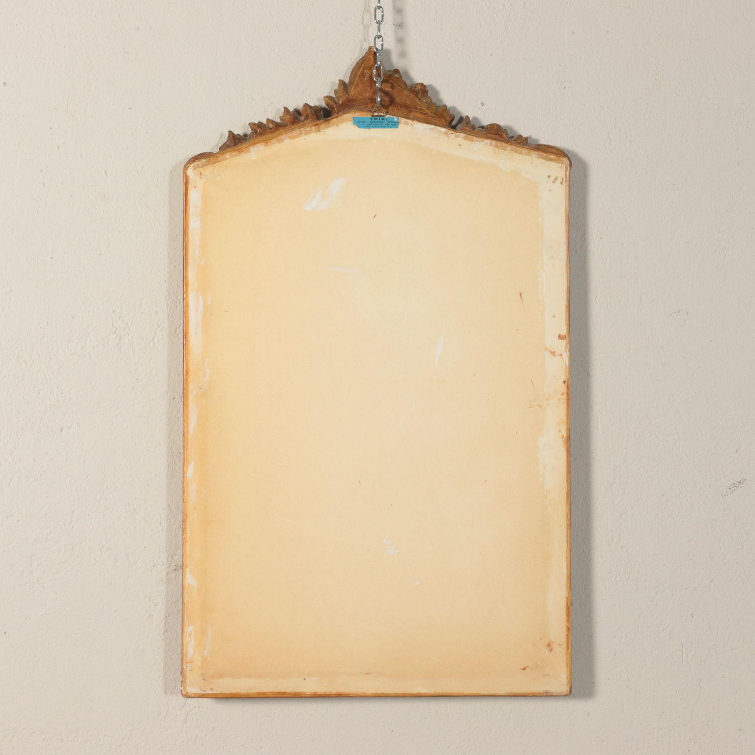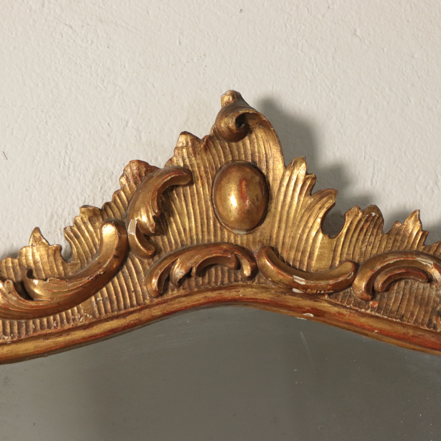 Le miroir est sculpté avec des motifs qui se répètent. Cyma moulé et taillé. Or.