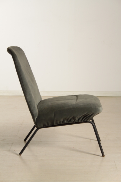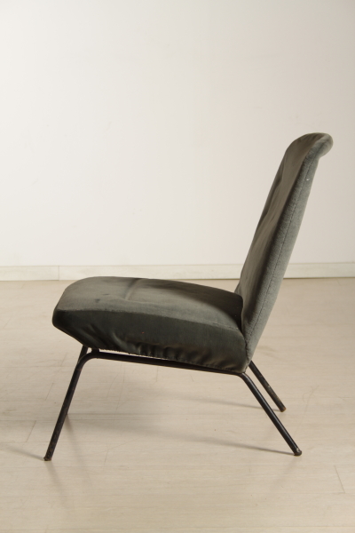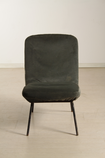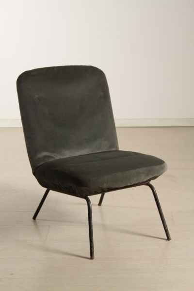 Fauteuil avec structure tubulaire noir. Rembourrage mousse sur sangles élastiques. Revêtement velours.