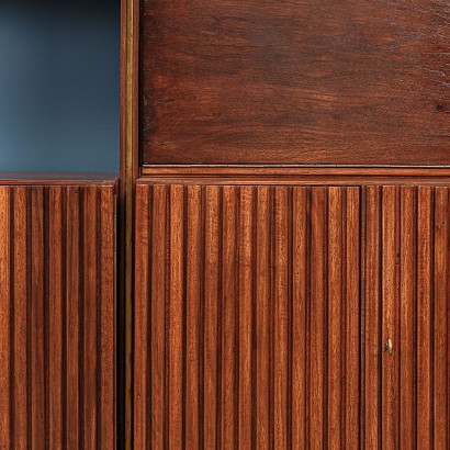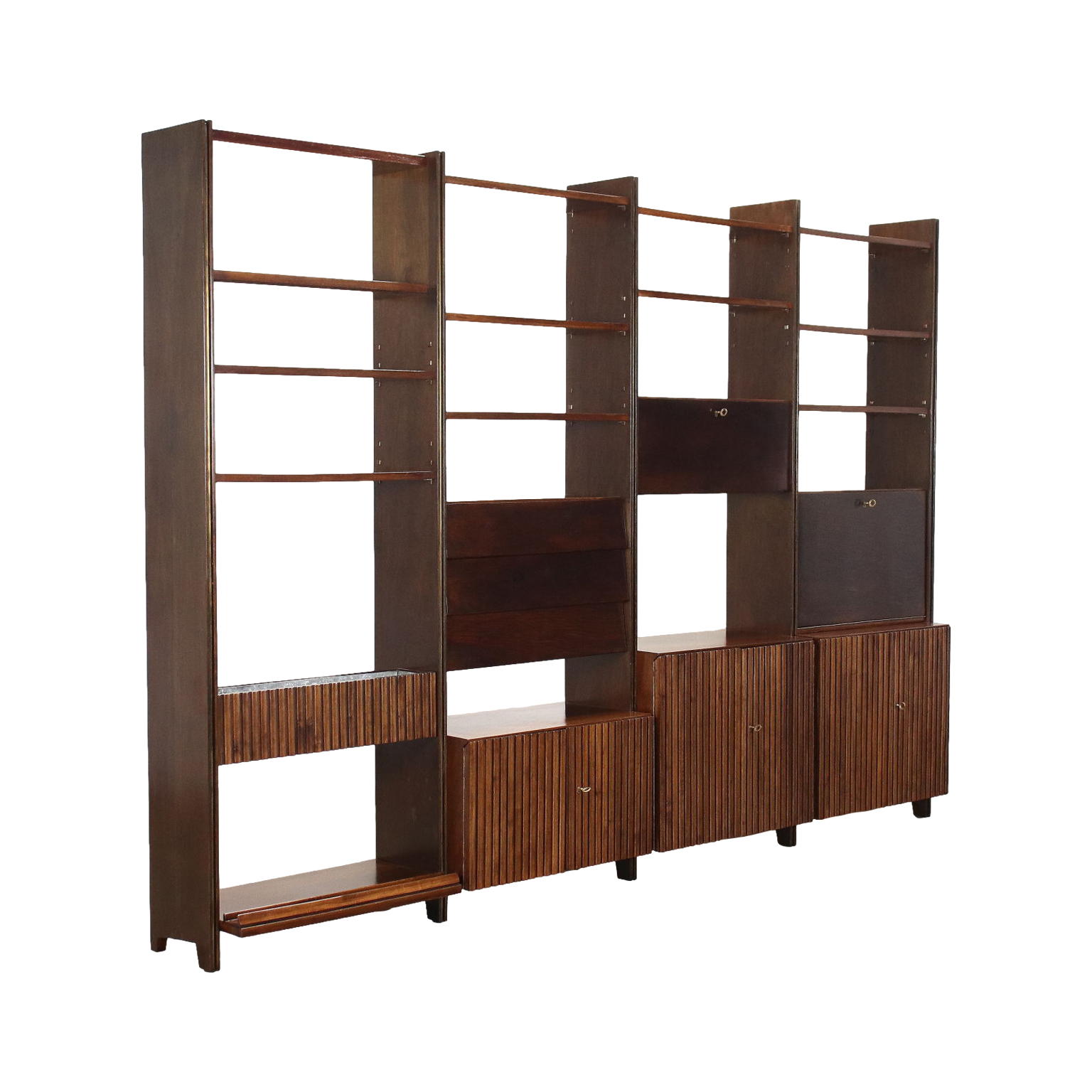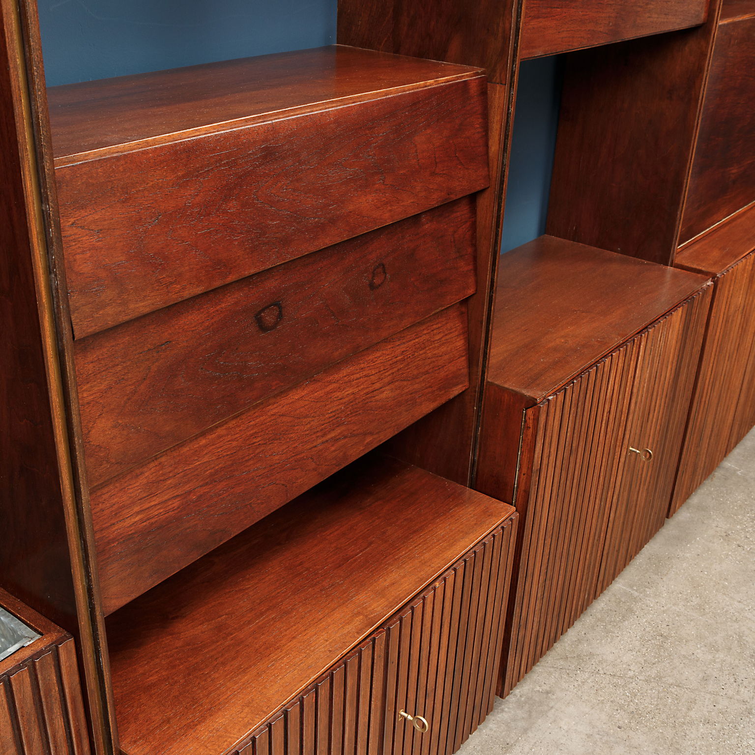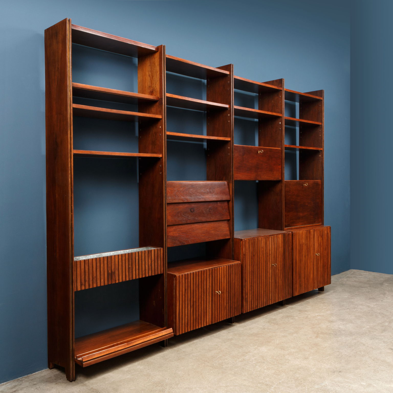 Bibliothèque des années 1950 Placage de noyer Laiton Italie Design moderne