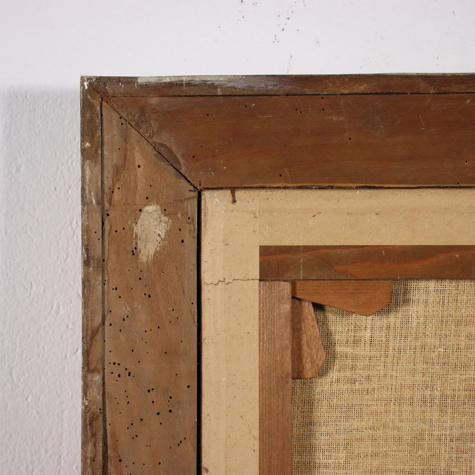 Peinture à l'huile sur toile. Ecole vénitienne du XVIIIe siècle. Le tableau dépeint l'épisode biblique tiré du livre de la Genèse, où les frères de Joseph, jaloux de la prédiliction de leur père Jacob pour lui, lui vendent comment esclave à des marchands qui vont à l'Egypte et déclarent à leur père qu'il est mort: ils portent sur éprouver la tunique souillée du sang d'un animal, cette tunique spéciale que Jacob avait fait tisser spécialement pour son fils bien-aimé. Dans cette représentation, où les couleurs vives soulignent le drame, ressort le mouvement intense du vieux patriarche, qui, défiguré par la douleur au visage, essaie de garder ce tissu taché loin de lui, déplaçant tout son corps vers la gauche et étendant son bras. ne pas lui permettre de l'approcher, presque une tentative de nier l'évidence. A droite, le groupe de trois frères, rapprochés dans une attitude complice, qui se racontent et se pointent le drame paternel. Restauré et rentoilé, le tableau est présenté dans un cadre ancien réadapté.