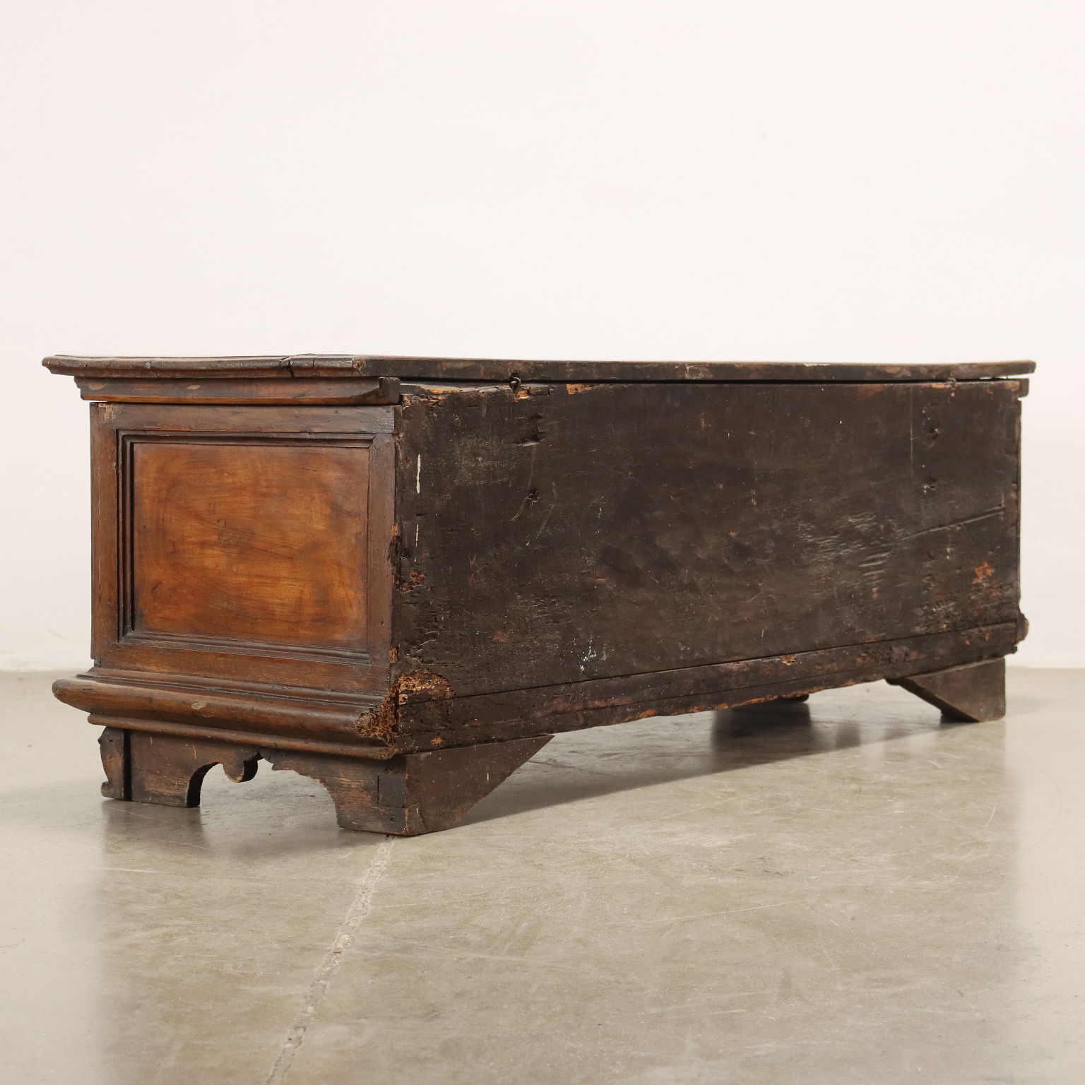 Coffre Ancien Baroque en Noyer du XVIIe-XVIIIe Siècle - Piacenza, Début du XVIIIe Siècle