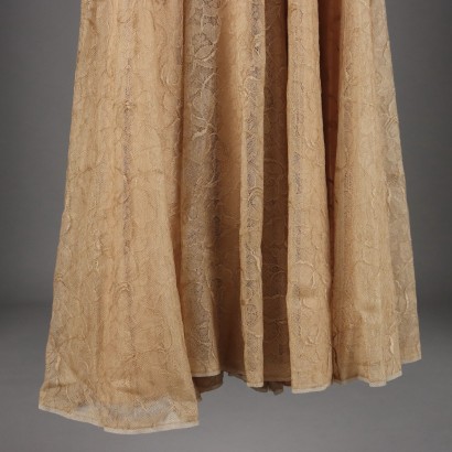 Robe Vintage de Cocktail Taille XS/S Années 50-60 Dentelle Beige/Or - Taille XS/S