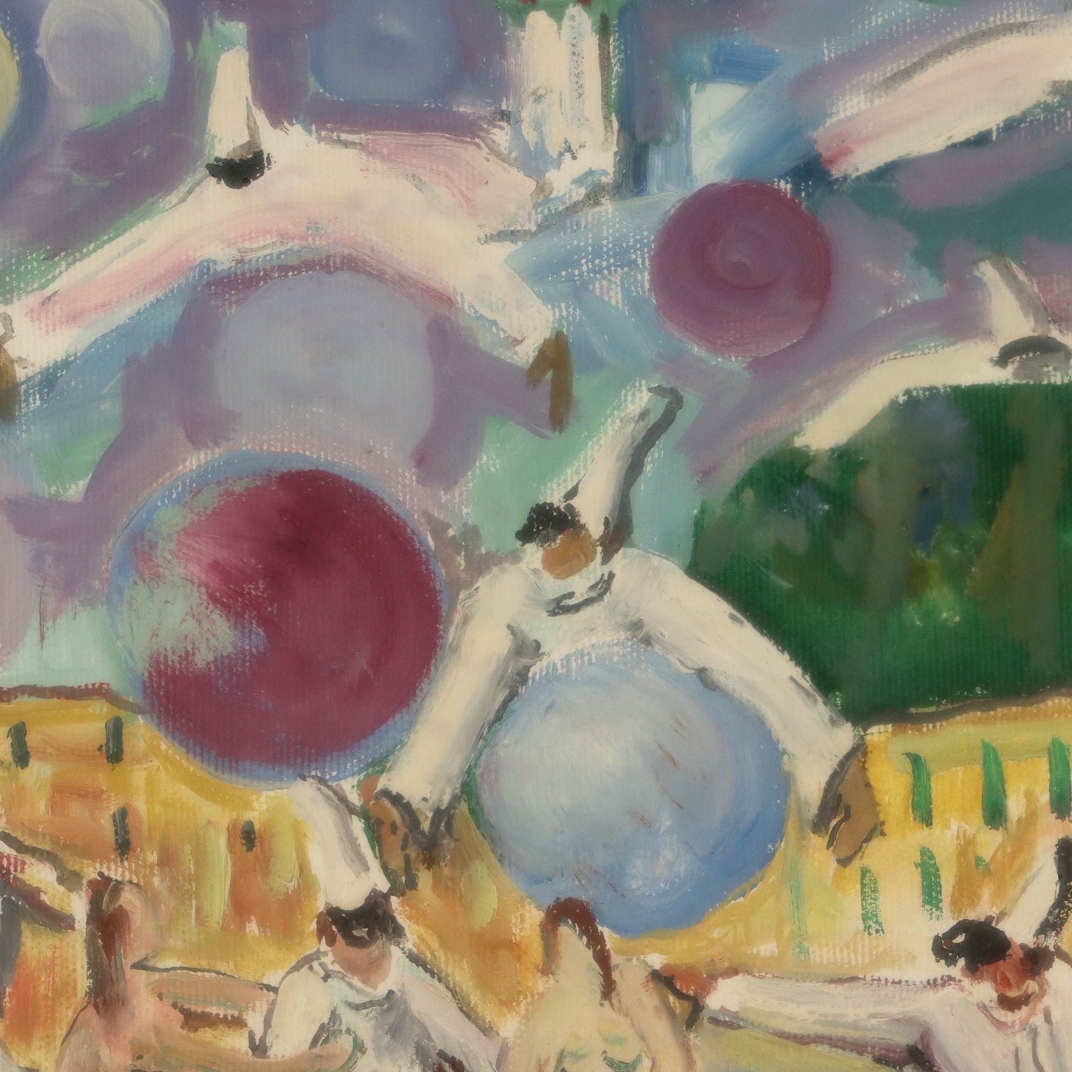 Tableau Contemporain Cortiello 1981 Les Vacances de Pulcinella Huile - Vacances Pulcinella 1981