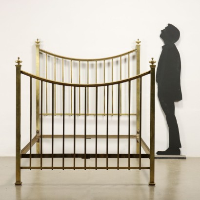 Lit à bandeau supérieur incurvé se terminant par des pinacles néoclassiques sur les montants rectangulaires tronqués qui marquent le mouvement repris par les barreaux décoratifs verticaux. Italie début 20e siècle