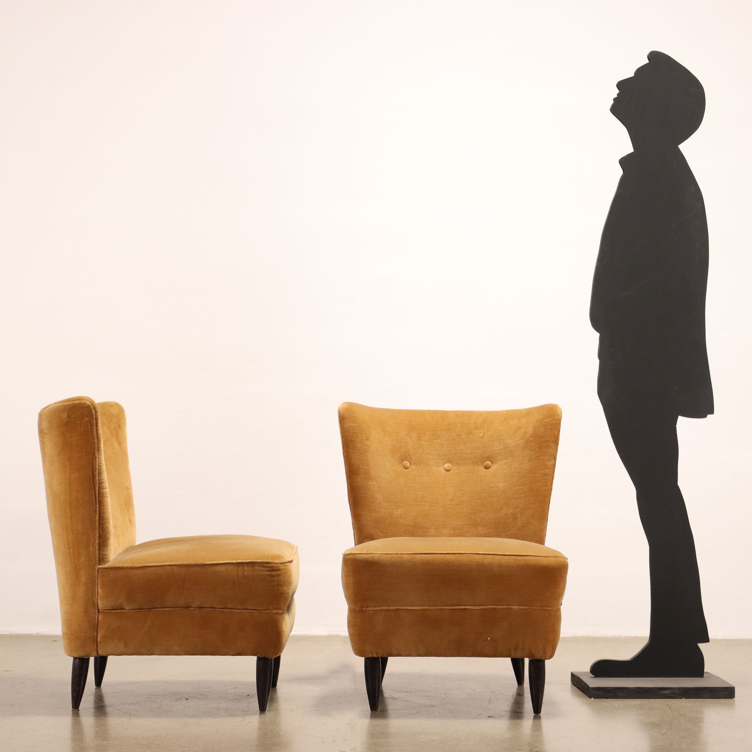 Paire de Fauteuils Velour Ressort Italie des Années 50