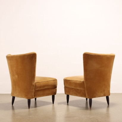Paire de fauteuils avec rembourrage à ressorts et revêtement en velours.