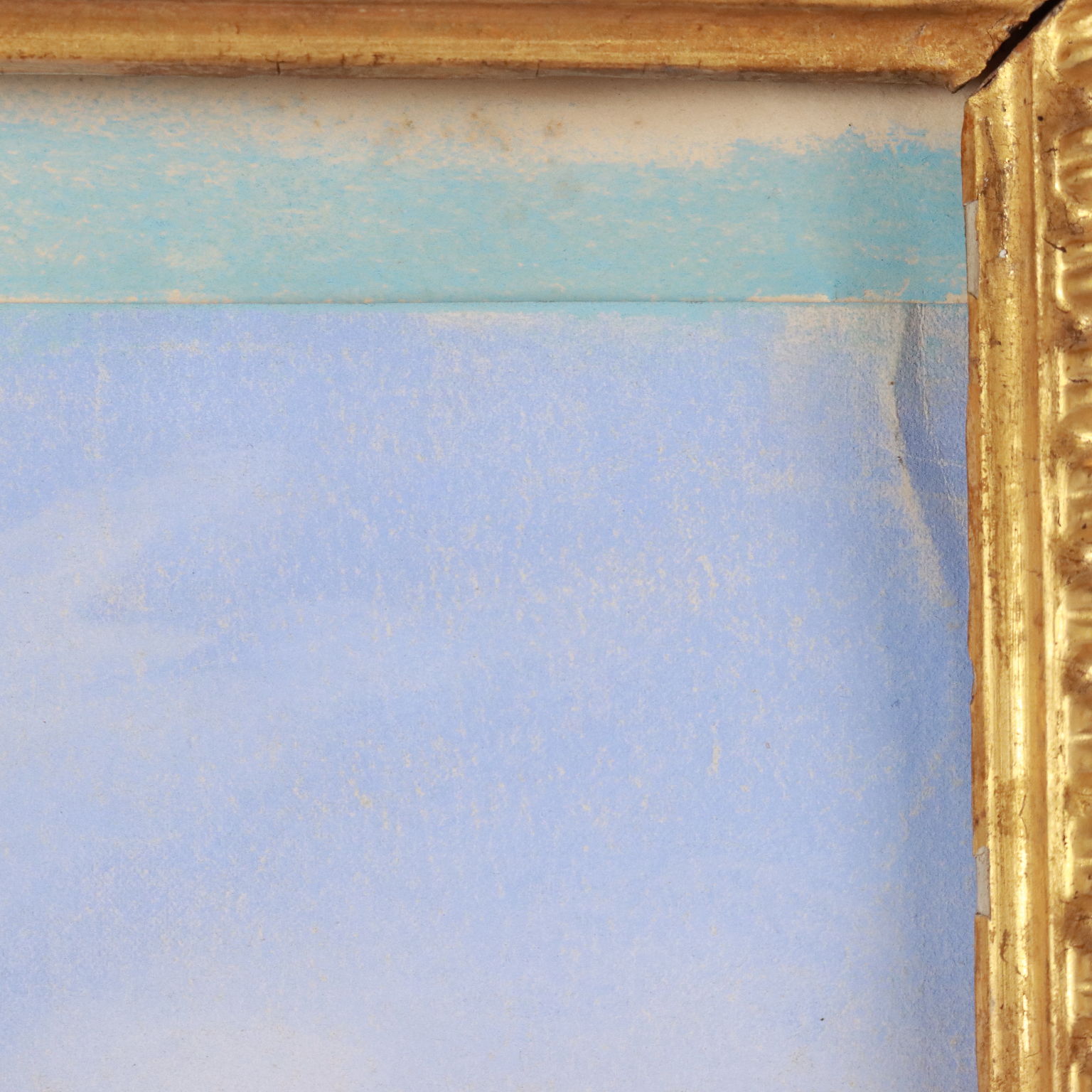 Aquarelle sur papier. Ecole nord-européenne du XIXe siècle. Une scène de la vie populaire au bord de la mer est présentée : toute la famille - femme et enfants - d'un pêcheur qui revient d'une soirée, aide à ranger les filets et les outils de travail, avec la pêche gisant sur le sable et le bateau à sec en arrière-plan. L'aquarelle a été placée dans un beau cadre doré antique, mais de taille plus grande que la peinture, de sorte que le ciel a été intégré à une autre feuille de papier placée derrière.
