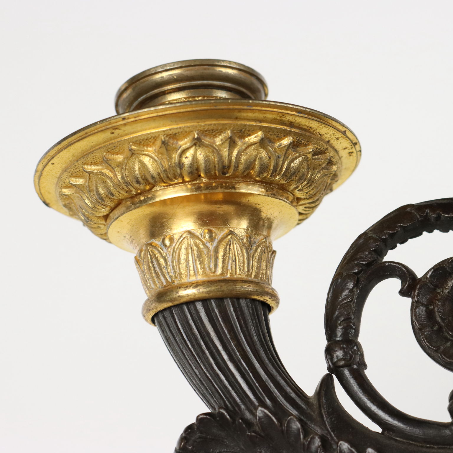 Paire de Bougeoirs Anciens Napoléon III '800 Bronze Doré et Bruni