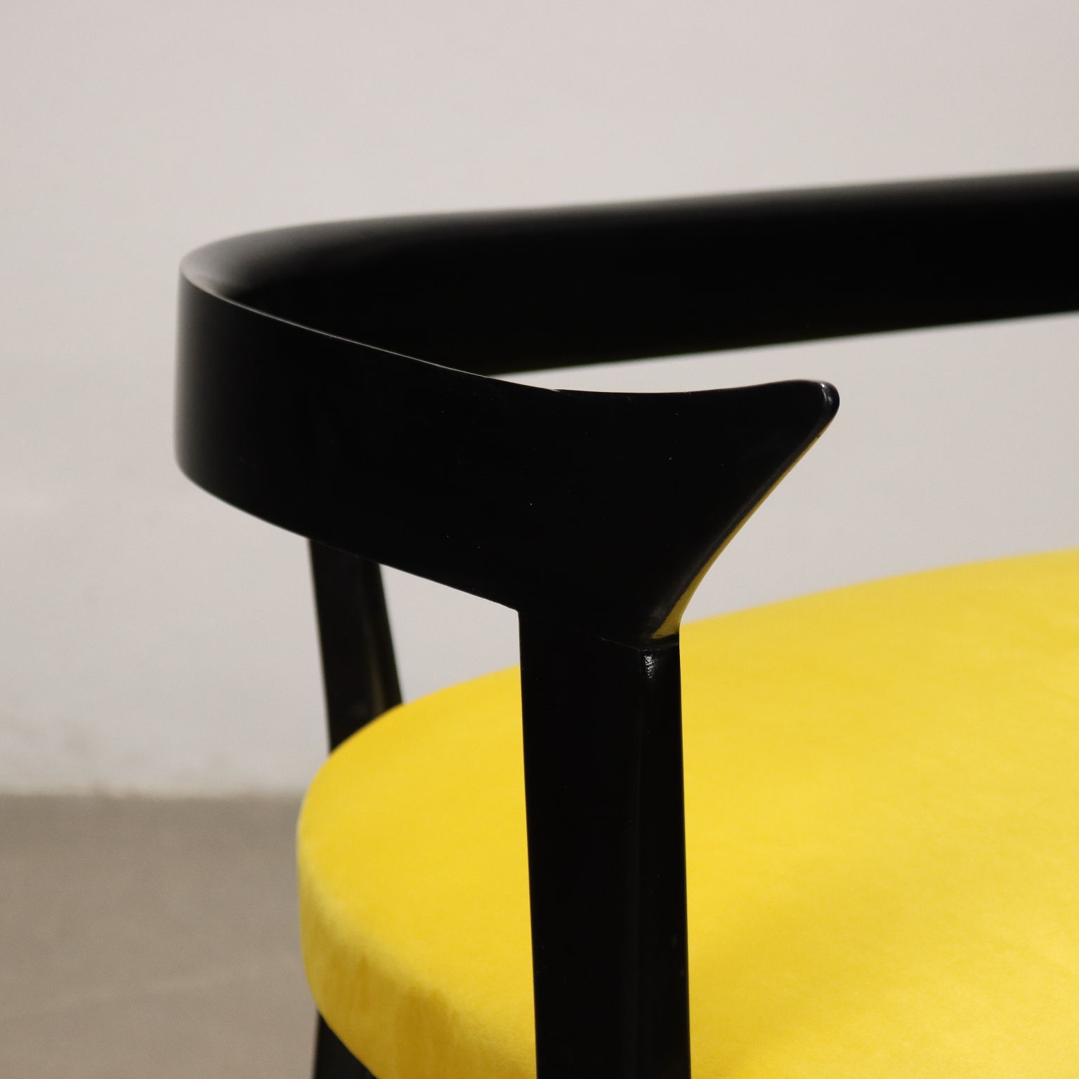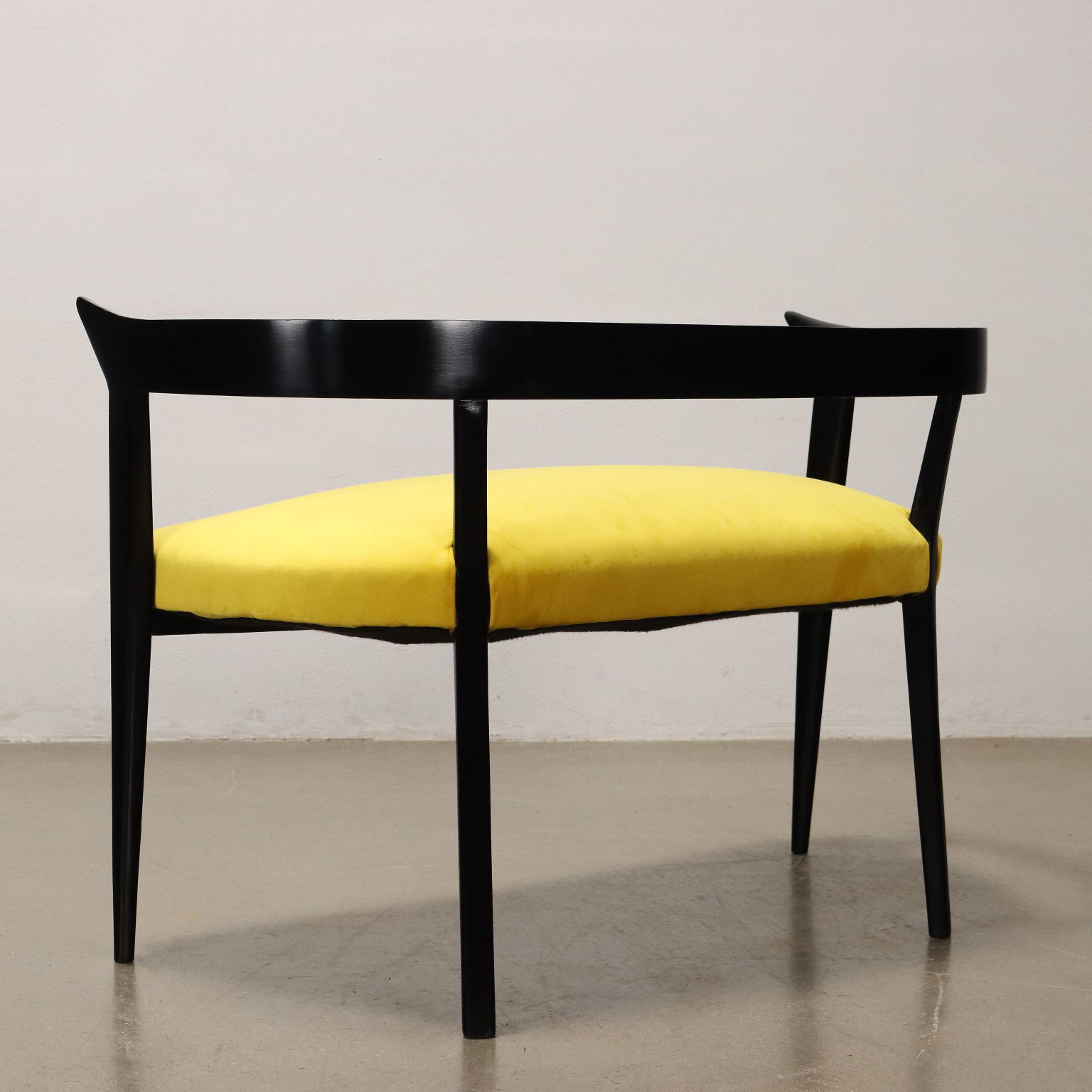 Elégante banquette en bois teinté ébène, assise à ressorts avec revêtement en velours. Restauré.