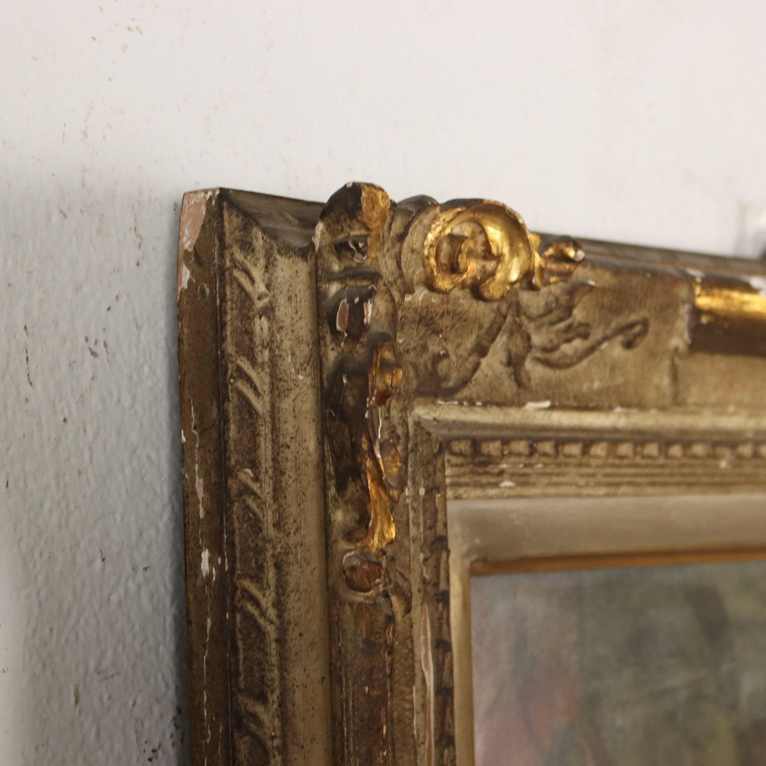 Peinture à l'huile sur toile. Signé en bas à droite. L'artiste milanais Roberto Borsa s'est distingué par une peinture définie comme "brillante et pleine d'entrain", réalisée dans un style ";très robuste et chaleureux";, dans lequel la dérivation impressionniste de la recherche d'effets de lumière reste cependant liée à la tradition réaliste de la fin du XIXe siècle lombard. Le tableau est présenté dans un cadre du milieu du XXe siècle.