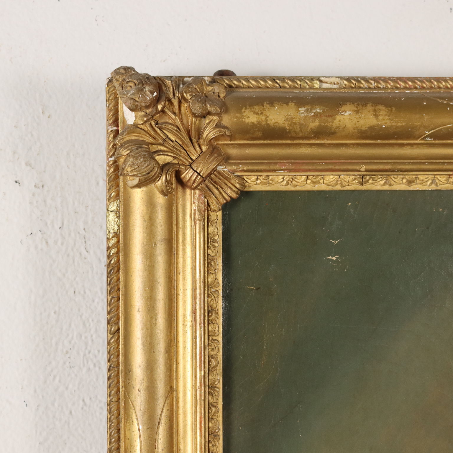 Peinture à l'huile sur toile. École d'Europe centrale de la seconde moitié du XIXe siècle. À droite, la signature de Werner. Le tableau présente une précision picturale dans le visage de la femme représentée, complète et bien définie, que l'on ne retrouve cependant pas dans les parties inférieures, où l'on peut voir les coups de pinceau rapides et non redéfinis. La toile présente de légères chutes de couleur. Il est présenté dans un décor de la fin du XIXème siècle.