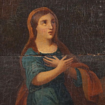 École flamande du XVIIème siècle. Huile sur panneau. La sainte pénitente est reconnaissable à ses attributs, le pot d'onguents, le livre et le crâne. Signé en bas à gauche "VD Werff". Cachet de cire d'exportation XIXème au dos. Il y a des fissures longitudinales dans le tableau. Présenté dans un cadre doré fin 19ème siècle