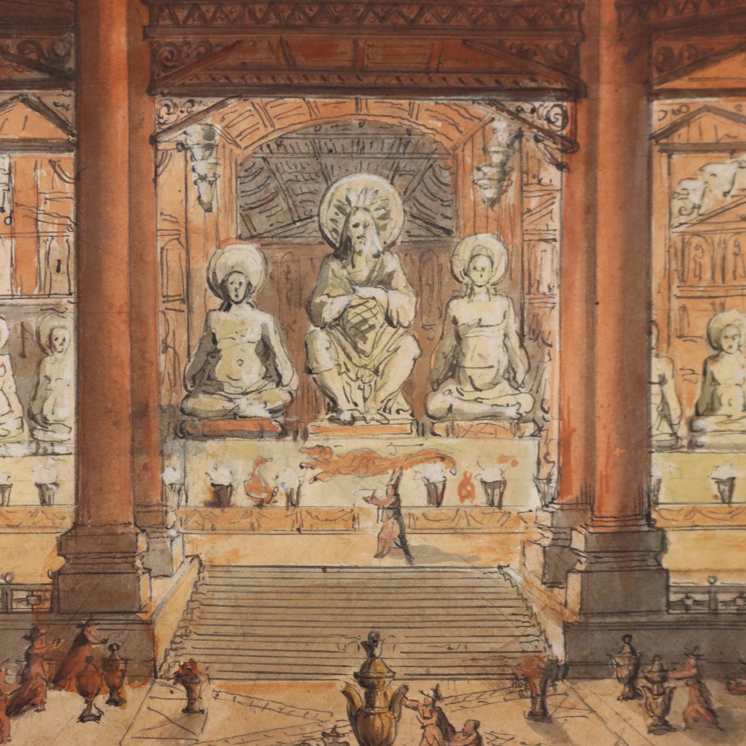 Tableau Ancien Scène d'Interieur A. Basoli Attr. Italie XIXe Siècle - Intérieur du Temple du Dieu Brahma