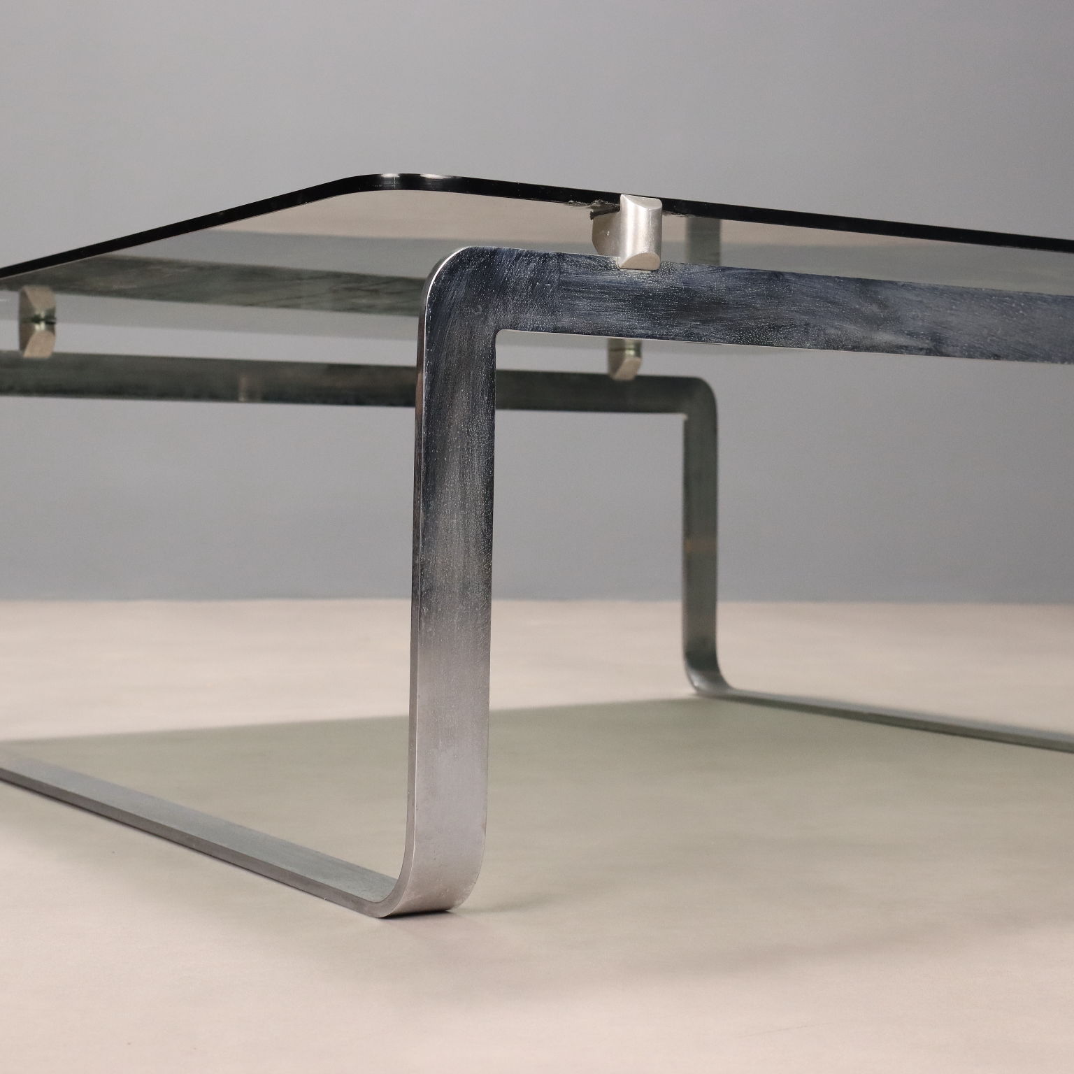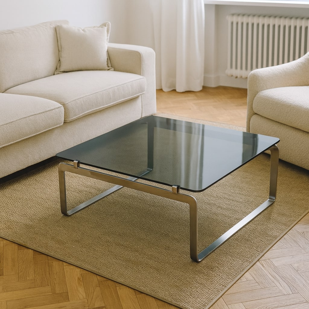Table Basse Vintage Métal Chromé Verre Fumé Design Années 1970