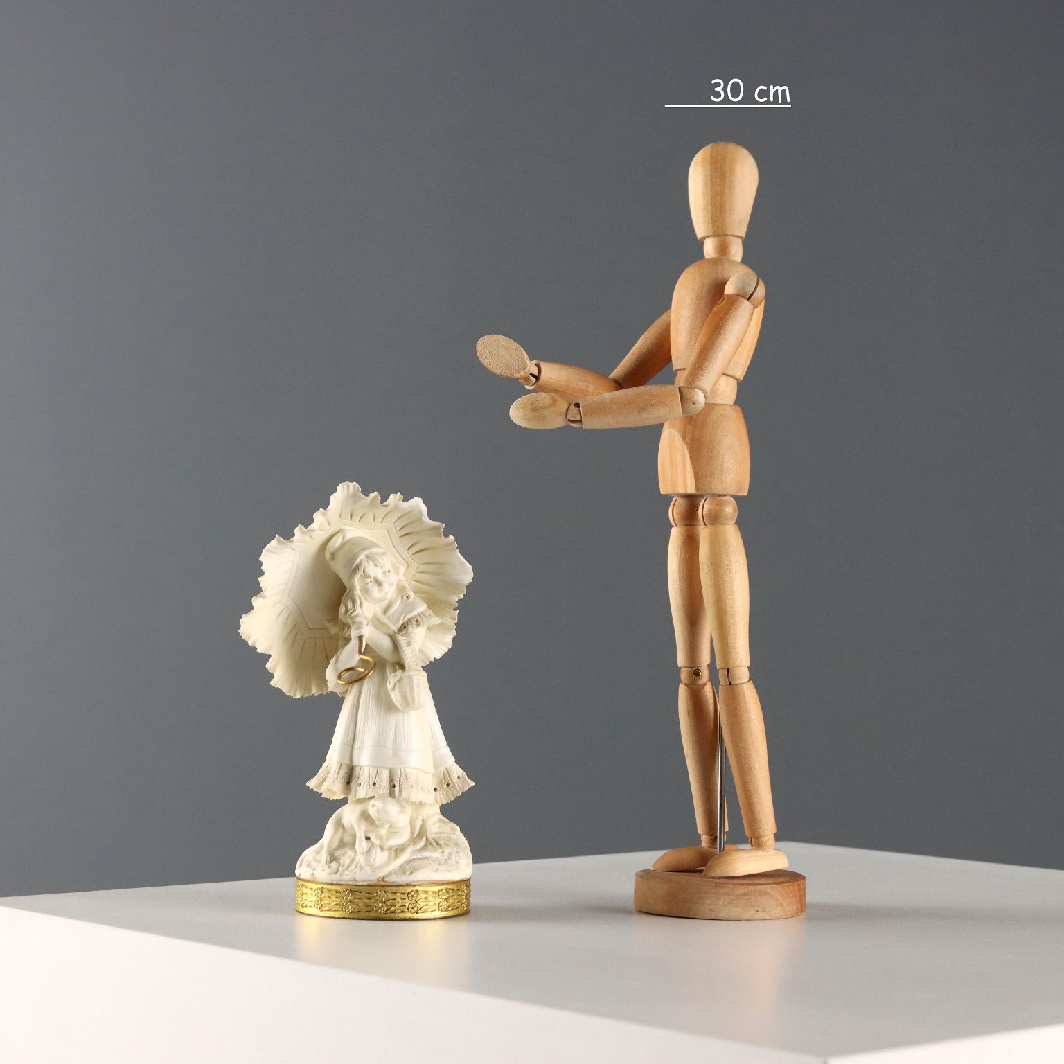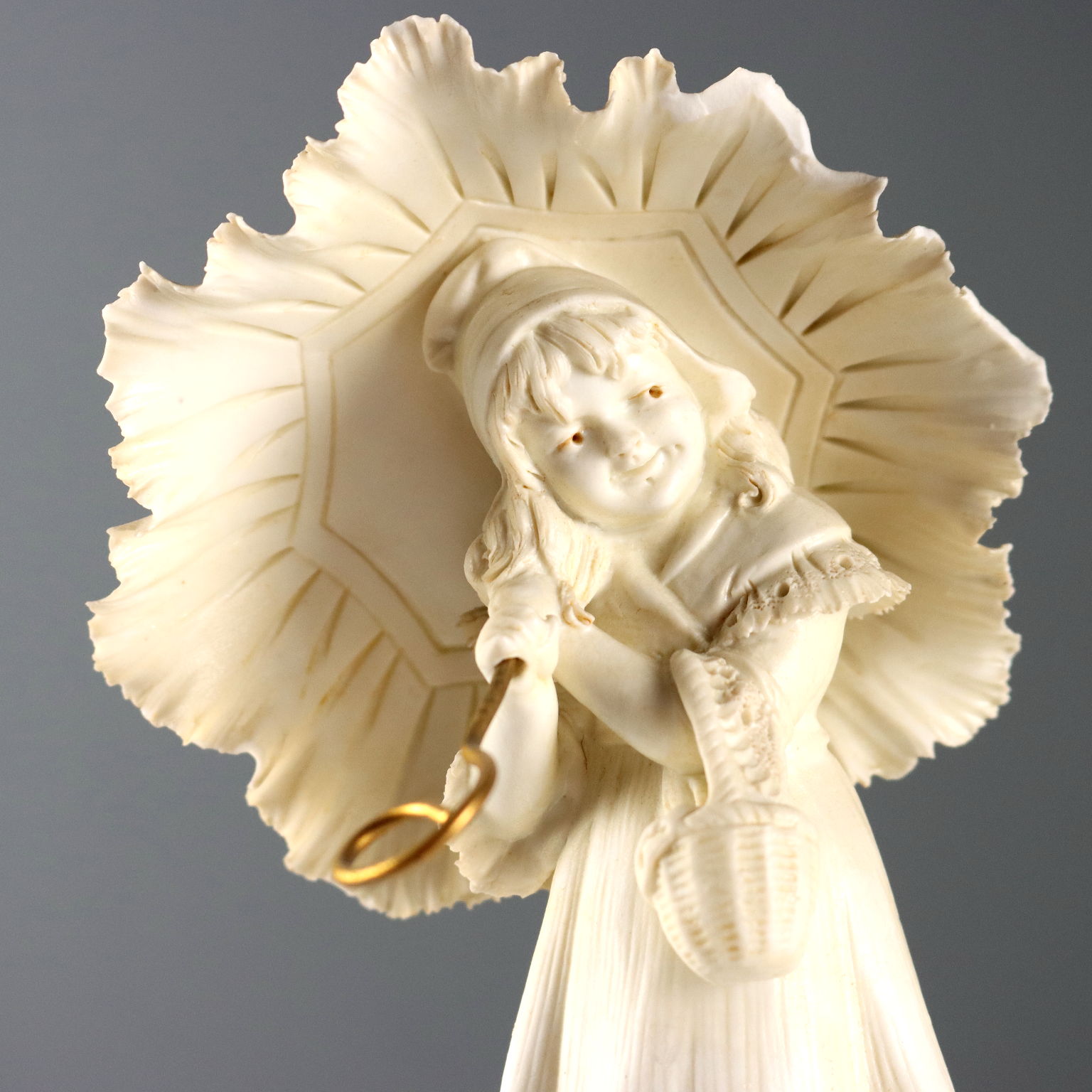 Figurine en biscuit représentant une petite fille avec un parapluie.