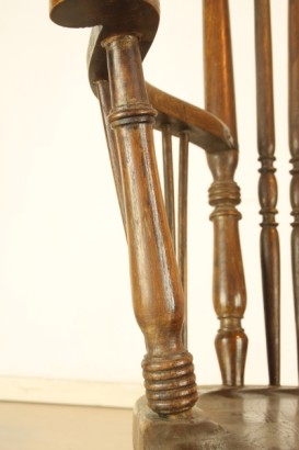 Fauteuil à bascule style Liberty vieille Amérique dirigée par jambes tournées avec barres transversales. Mossi accoudoirs et dossier pris en charge par la série de tournages. Gamme de profilé de dossier.