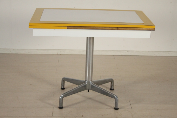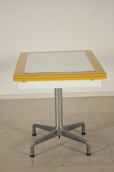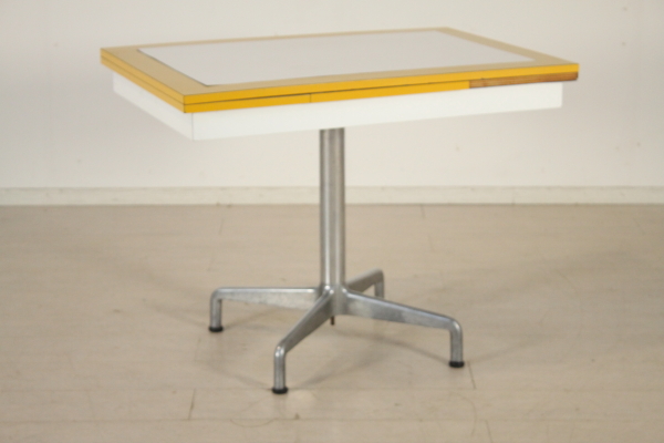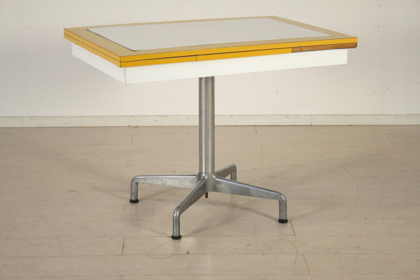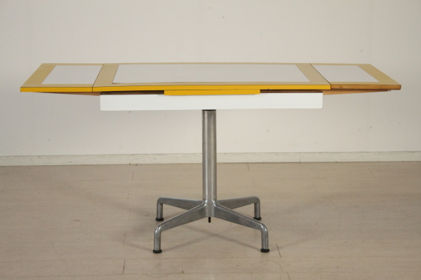 Tableau 50-60 ans. Table qui se prolongent ; bois recouvert de Formica ; base en aluminium et métal chromé. Fair condition, a quelques signes d'usure.
