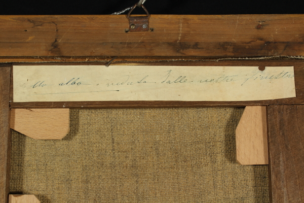 Huile sur toile de la fin de ' 800. Le papier arrière lable avec le titre « une sueur de l'aube de nos fenêtres ». Exemple de social petit tableau romantique. Déjà restauré, est présenté au début du ' 900