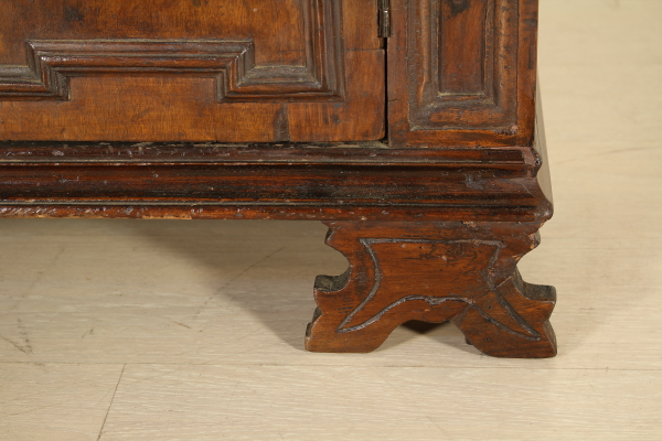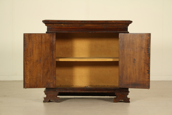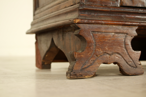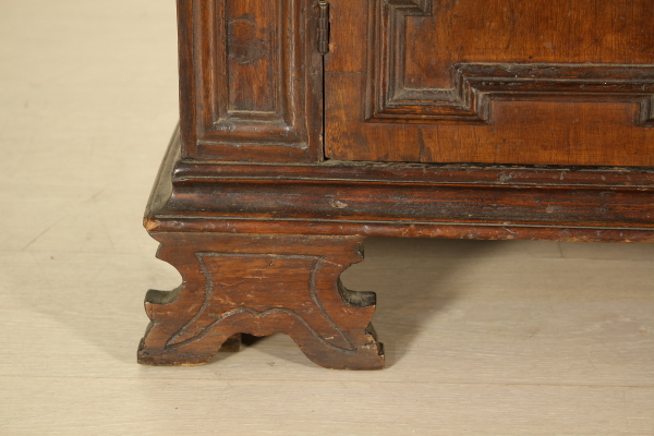 A paire de portes et sculptées jambes se terminant avec étagère-pieds. A subi des modifications et avant et restaurations originales sur les flancs.
