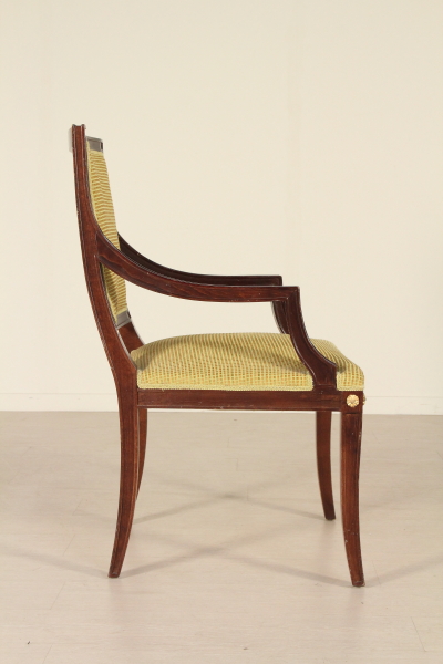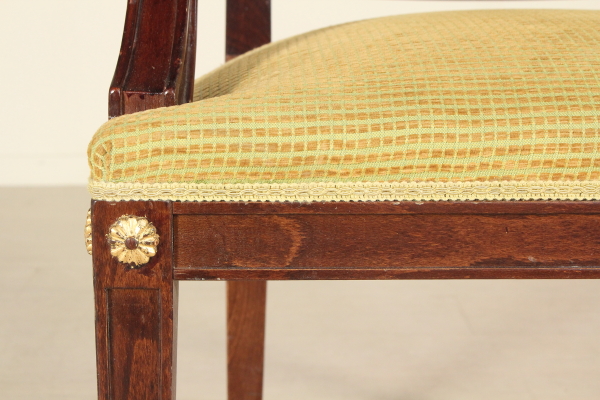 Dos et jambes, assise tapissée de sabre. Boutons d'or sur les jambes.