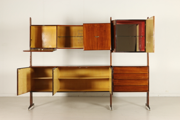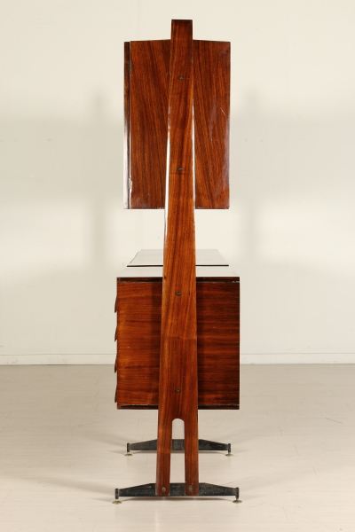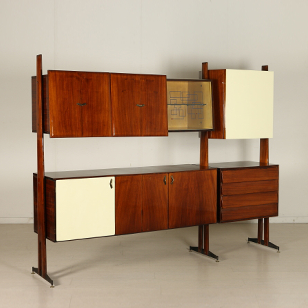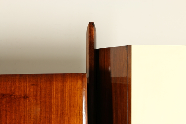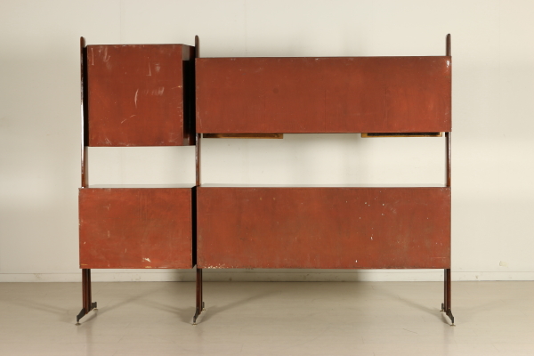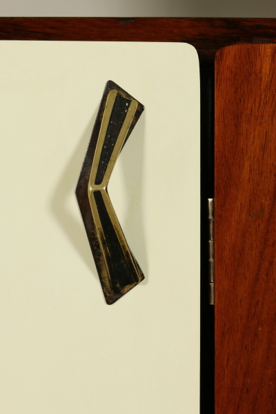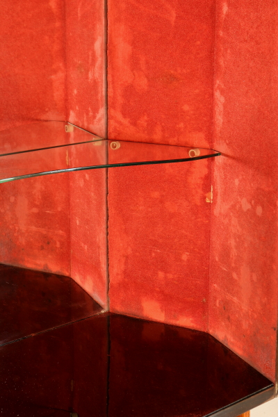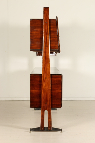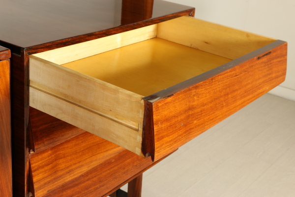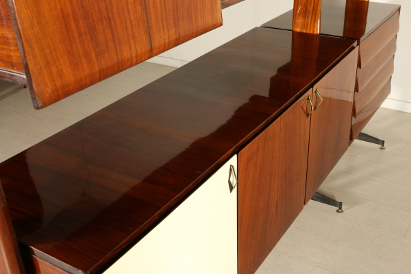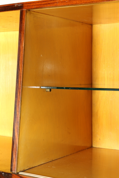 Séjour mobile ; verre en acajou plaqué bois, formica. Bon état, rénové.