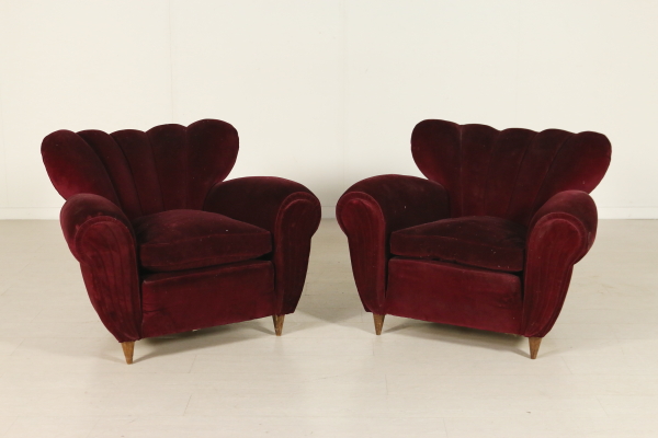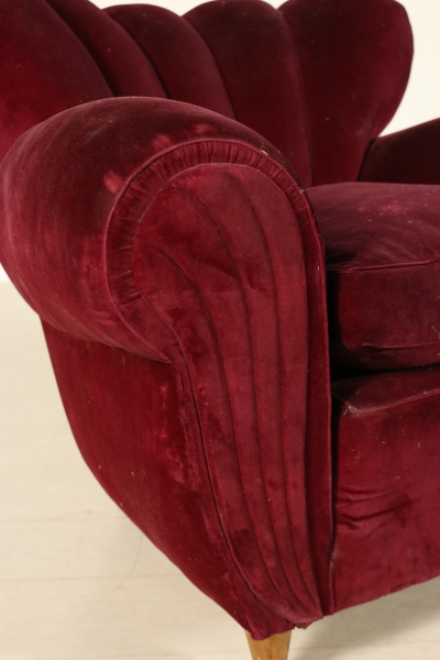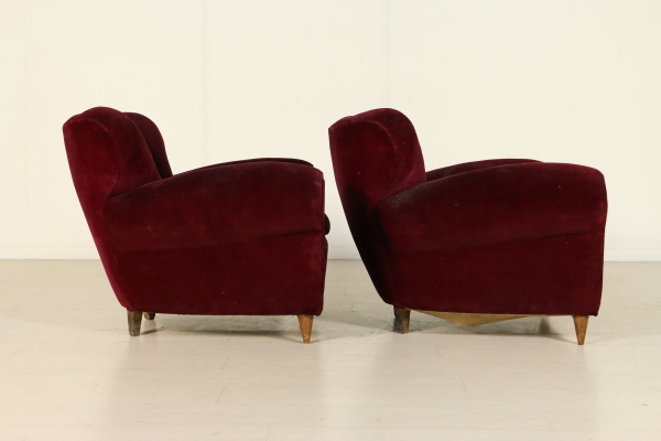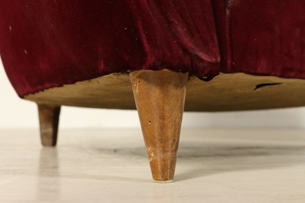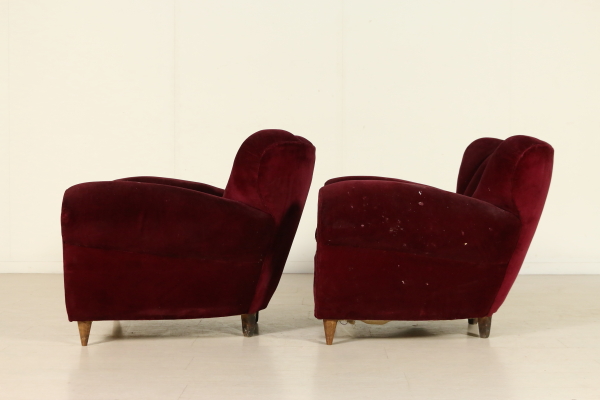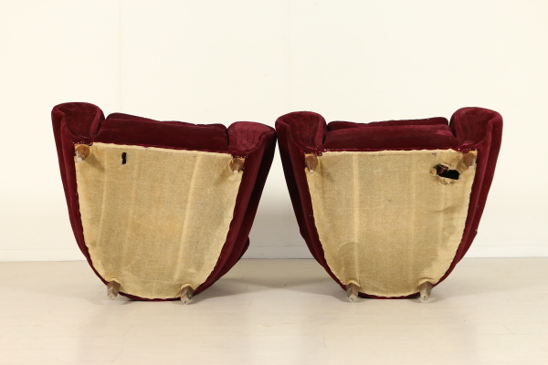 Paire de fauteuils ; rembourrage doux, oreillers, garniture de velours de coton. Bonne condition, montrent peu de signes d'usure.