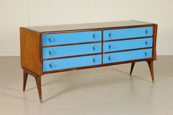 Dresser ; Burl de placage en bois et une façades de verre laqué, le traité de retour. Fair condition, a une usure normale.