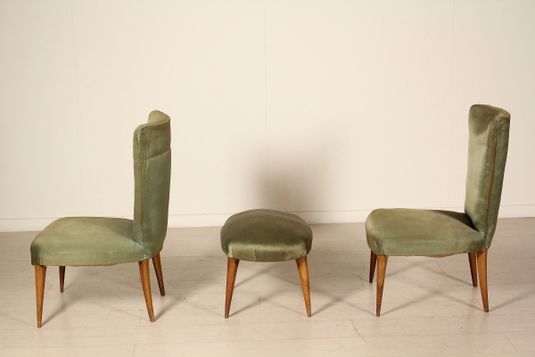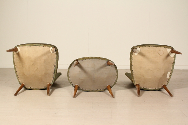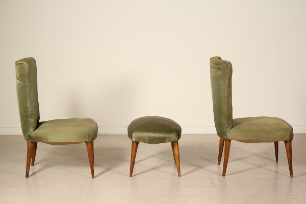 Paire de fauteuils par des matières fécales ; rembourrage doux, rembourré en tissu. Fair condition, a une usure normale.
