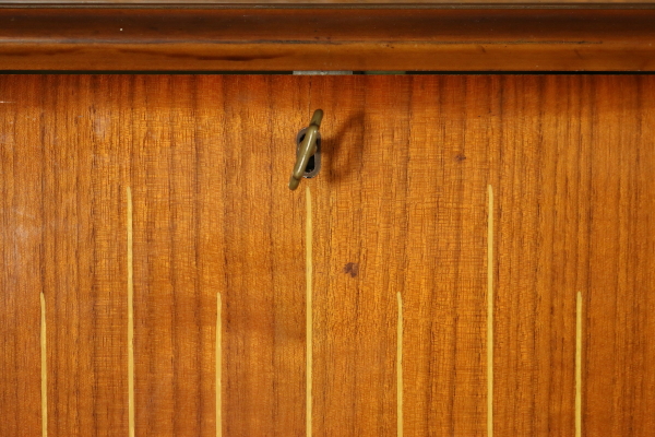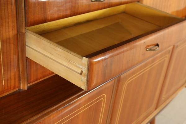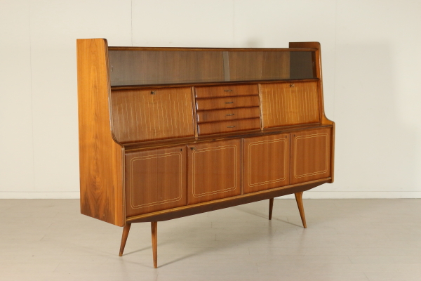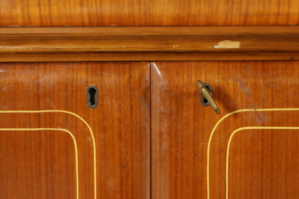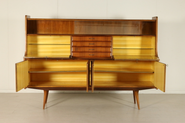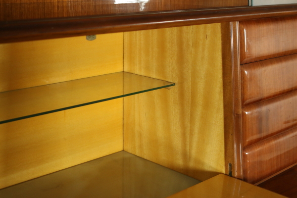 Dressoir ; placage en bois acajou, verre. Bon état, montre peu de signes d'usure.