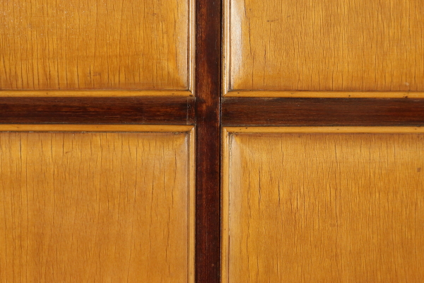 Cabinet mobile ; placage en bois acajou et érable. Bon état, montre peu de signes d’usure.