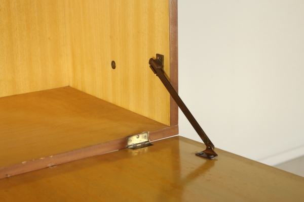 Mobile ; lagno placage d’acajou, métal, en laiton, porte grillagée. Bon état, montre peu de signes d’usure.