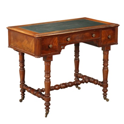 Tavolo Barocco in noce, piano in asse unica, tre cassetti nella fascia sottopiano. Piedi sostituiti. Spagna, inizio XVIII Secolo.