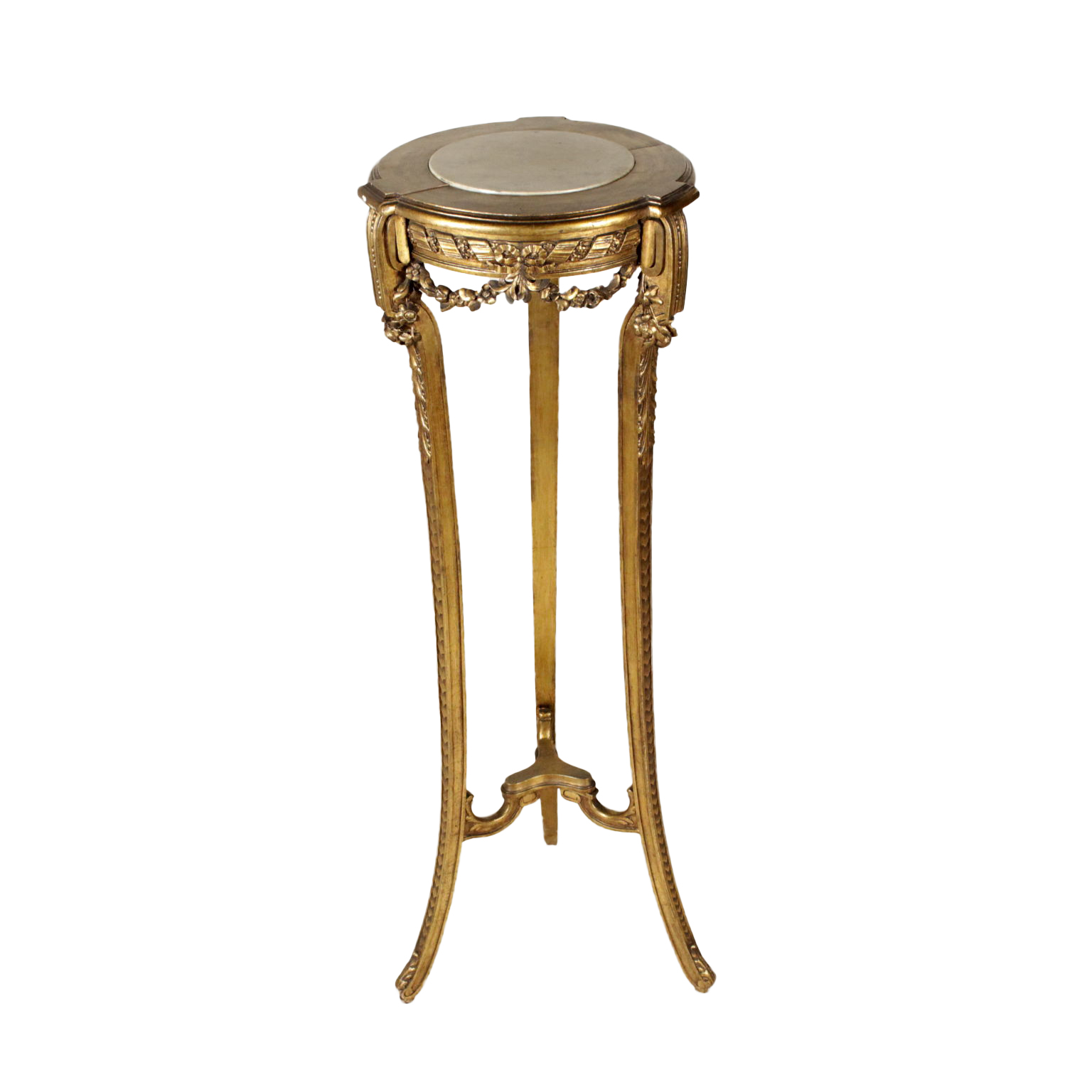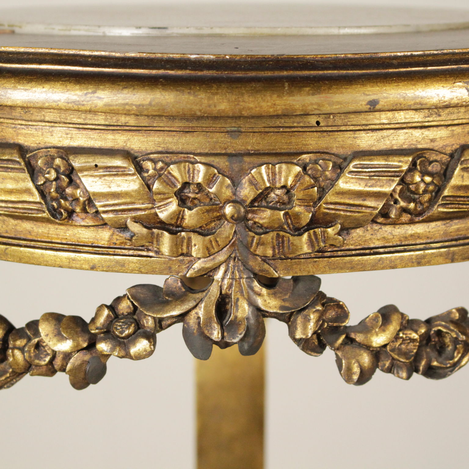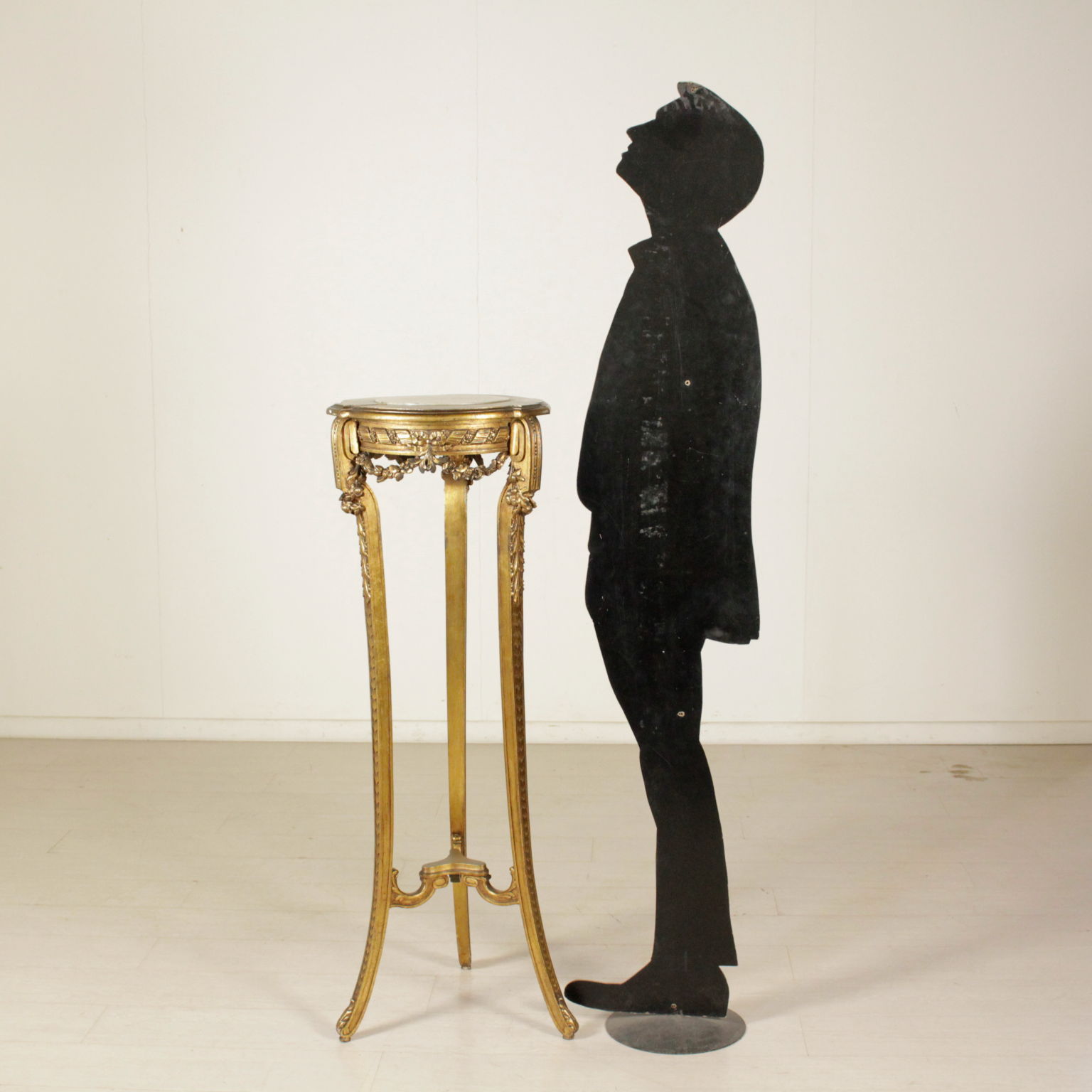 Tavolino portavasi riccamente intagliato presenta piano con marmo incassato. Primi '900.