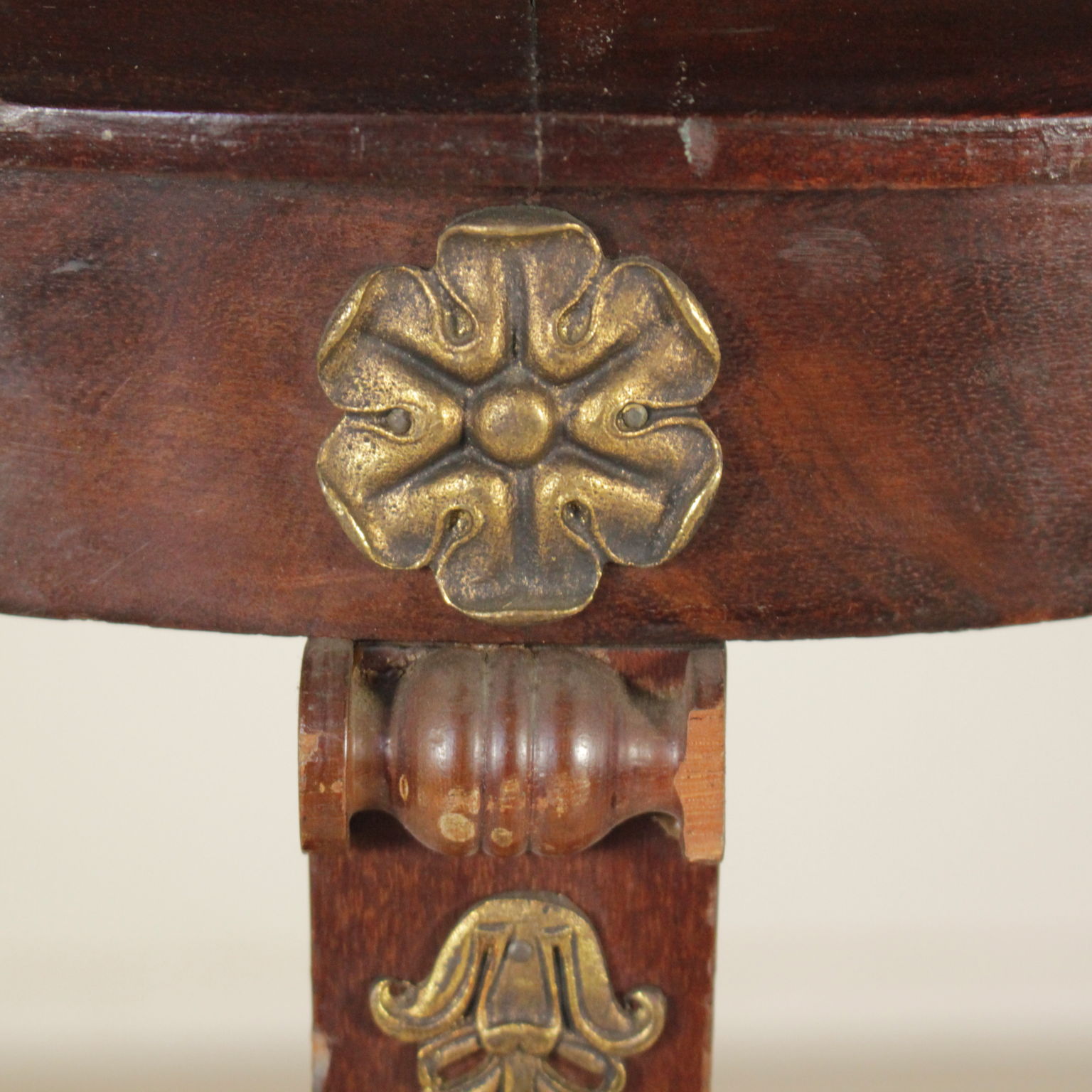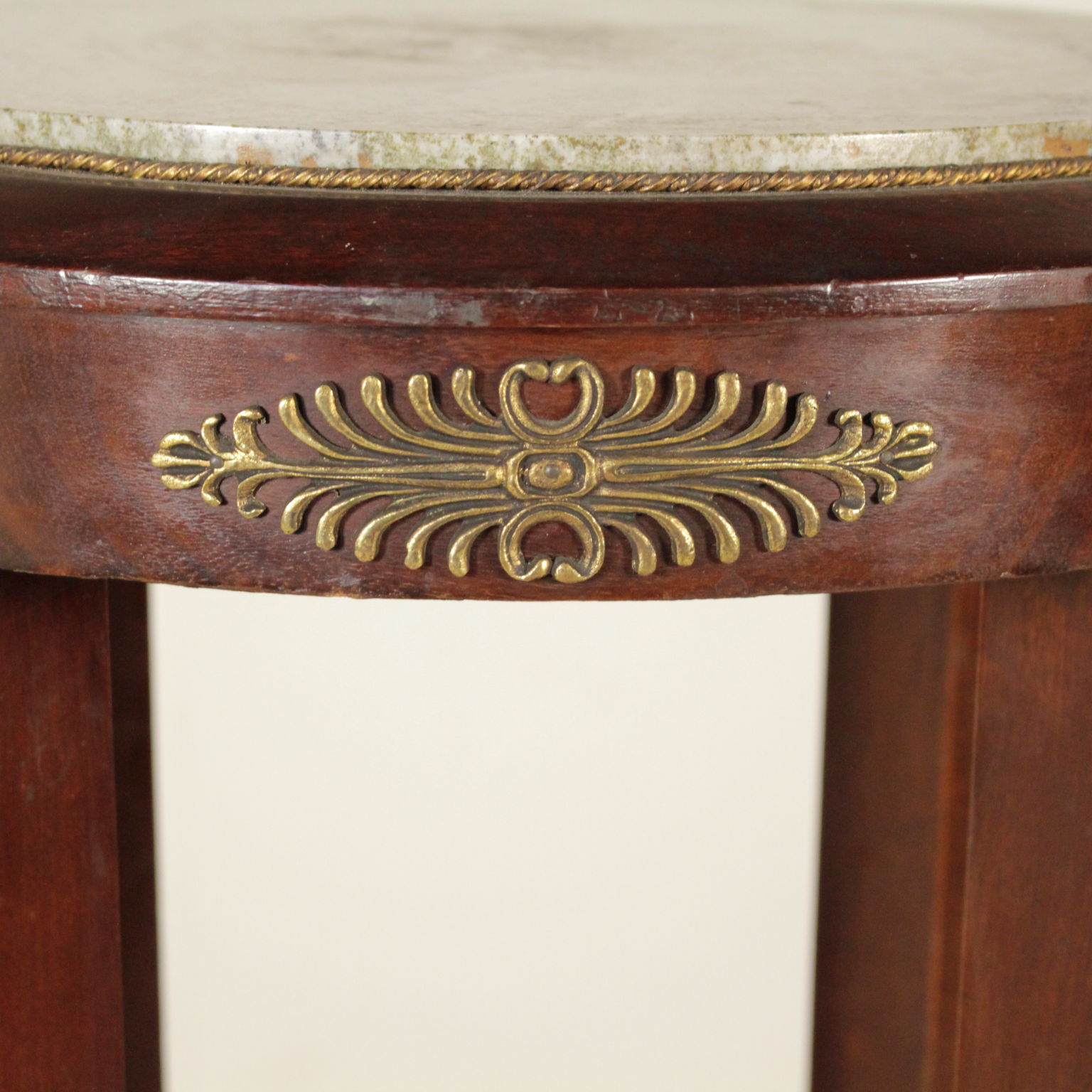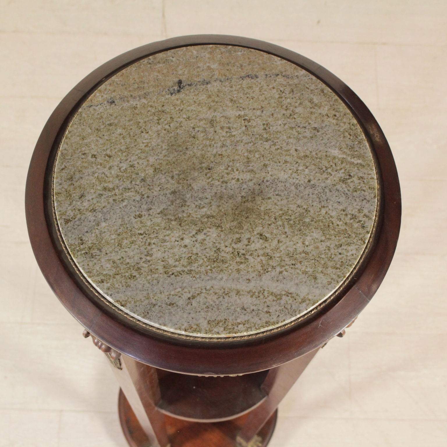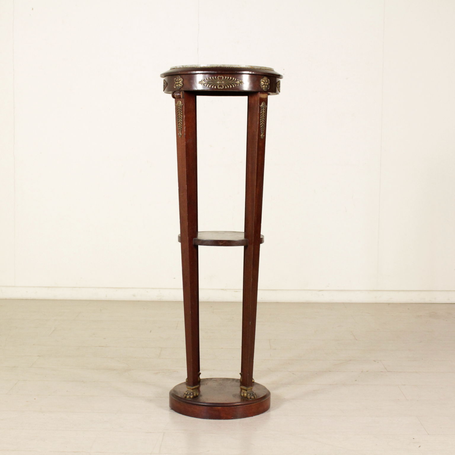 Portavasi con marmo in stile impero. Presenta fregi e piedi ferini in bronzo. Piano tondo con marmo incassato.