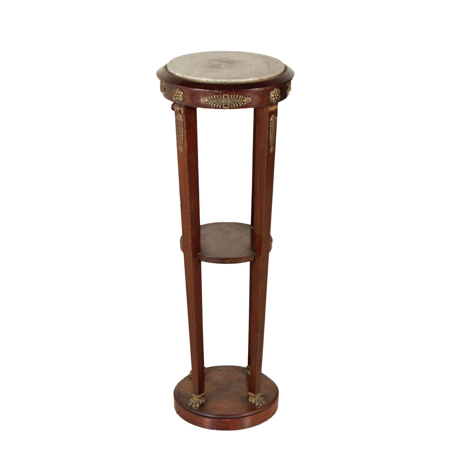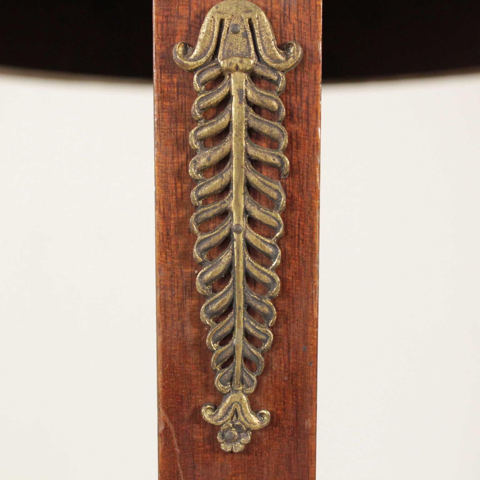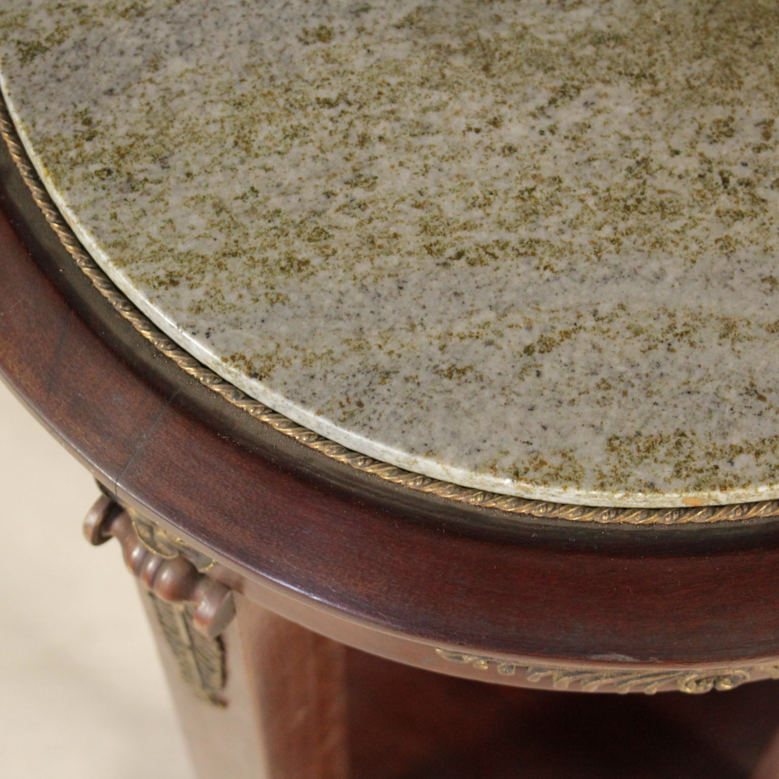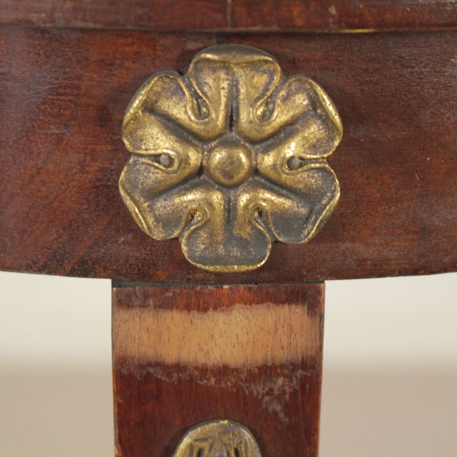Portavasi con marmo in stile impero. Presenta fregi e piedi ferini in bronzo. Piano tondo con marmo incassato.