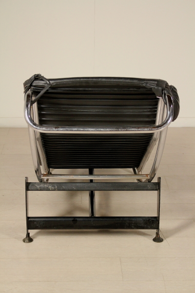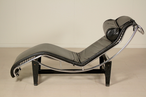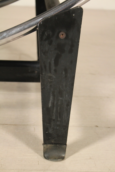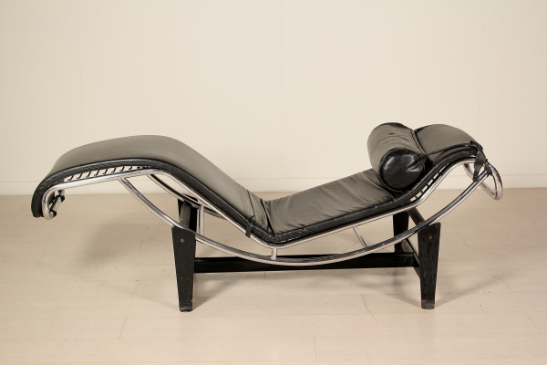 Riproduzione del modello originale di Le Corbusier; metallo laccato e cromato, cuscino in espanso, rivestimento in similpelle.