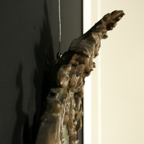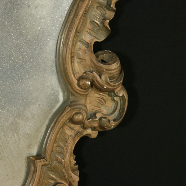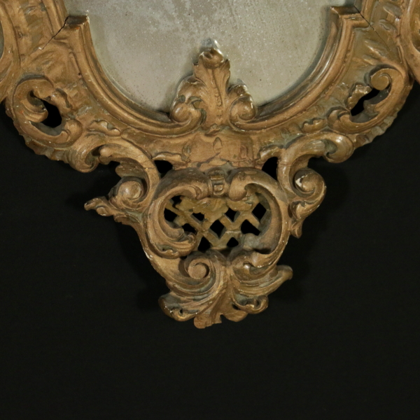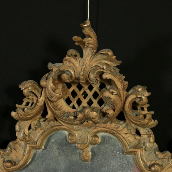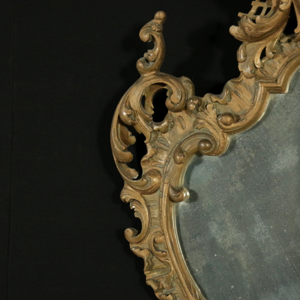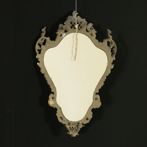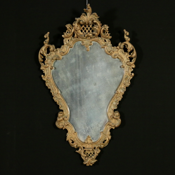 Specchiera in stile sagomata riccamente intagliata e traforata.